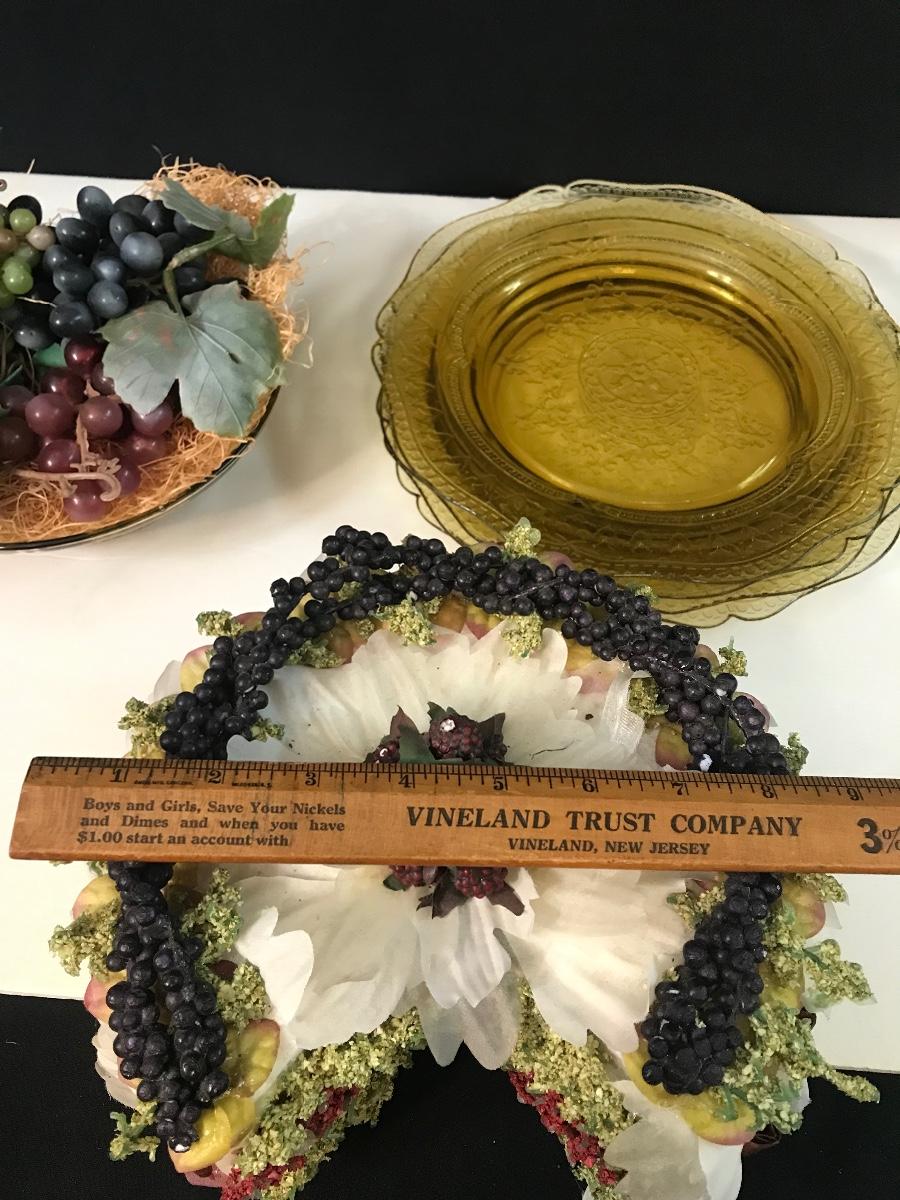 Depression Glass And Decorative Fake Food. Please see all pictures as they are the best representation of the items. The pictures show condition, measurements if taken, and what is included in the lot. Due to the large amount that we photograph and the time frame, we are not always able to take measurements. All items unless noted, are pre-owned and have been used. If you purchased furniture, you must bring help. We do not allow one person to carry large furniture out on their own. Bring help, tools and a truck for the safety of our client’s homes, and your personal safety. Company policy. Thank you.