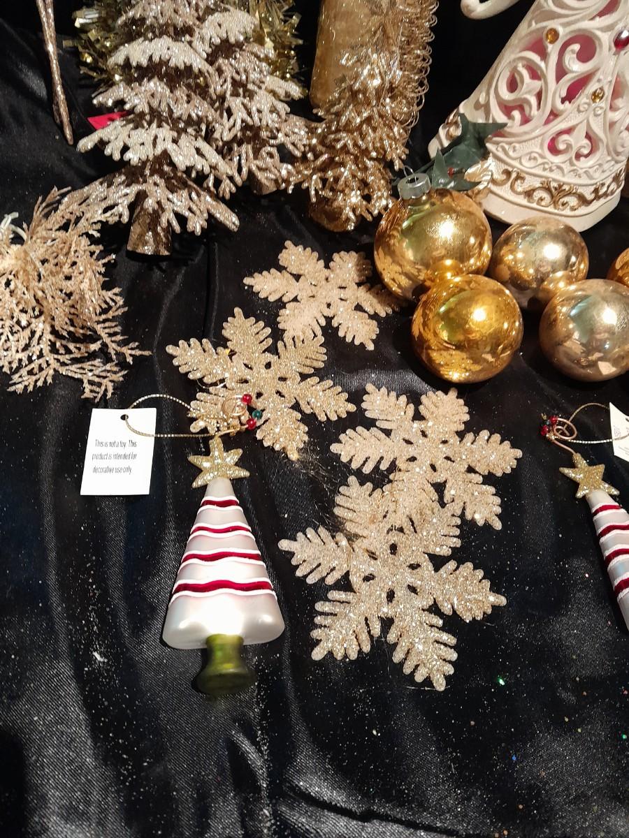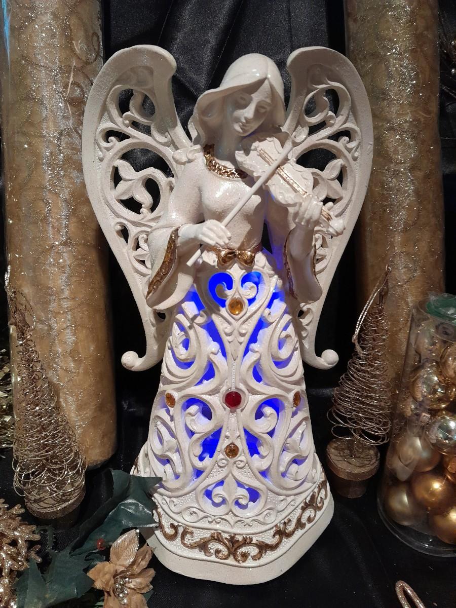 GOLD THEMED CHRISTMAS DECORATIONS WITH LIGHT CHANGING ANGEL