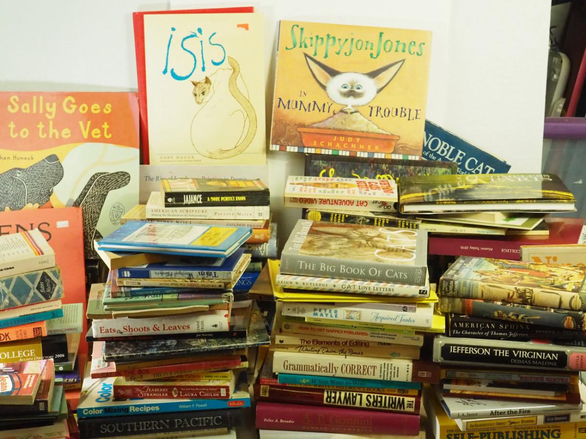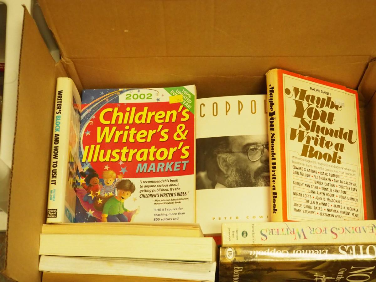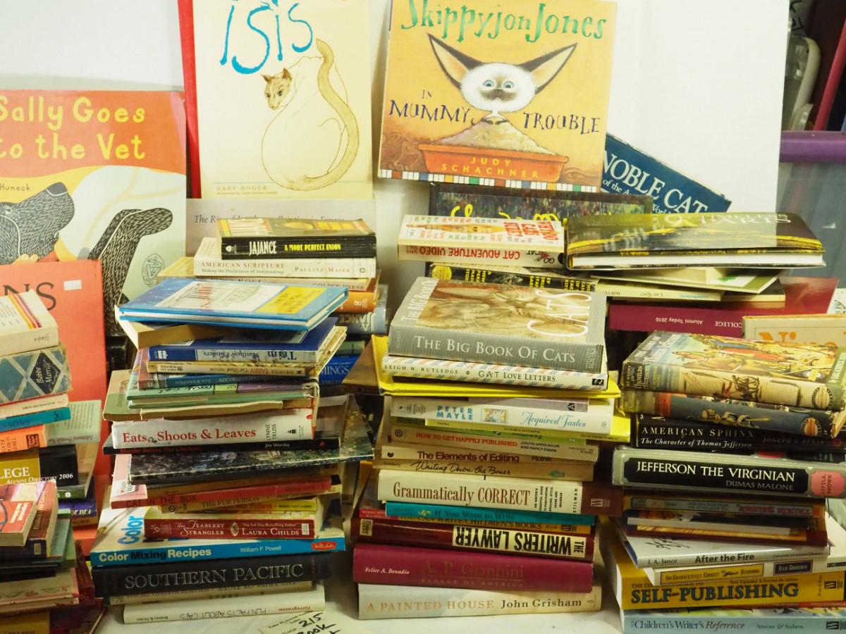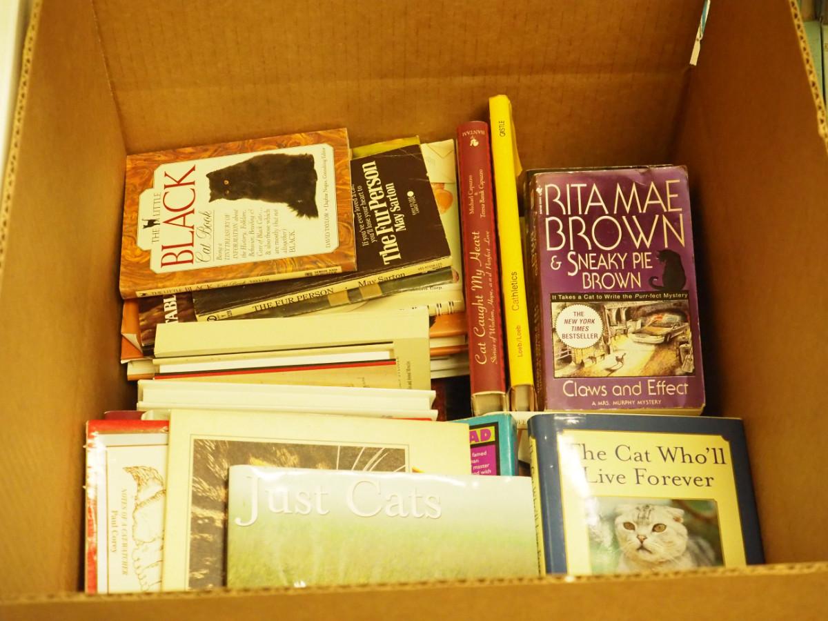 Lot 215- Huge amount of books, hardback and paperback. Big boxes full of cat theme books. maybe every book about cats ever! Huge box of books on writing , Lots of art books, small amount of fiction and children's books with a few cook books thrown in!