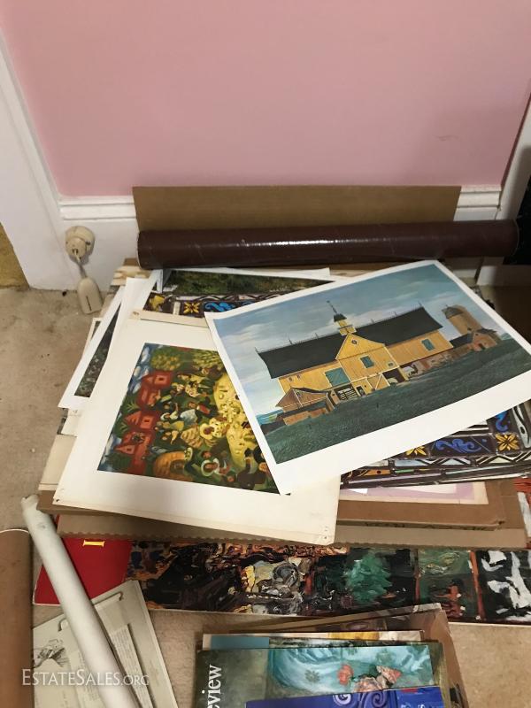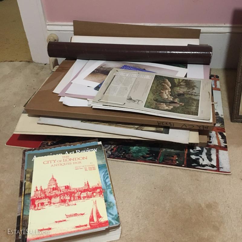 Assorted prints. Various artists, genres and sizes. See photos. Lot also includes several catalog books from art fairs and auctions.