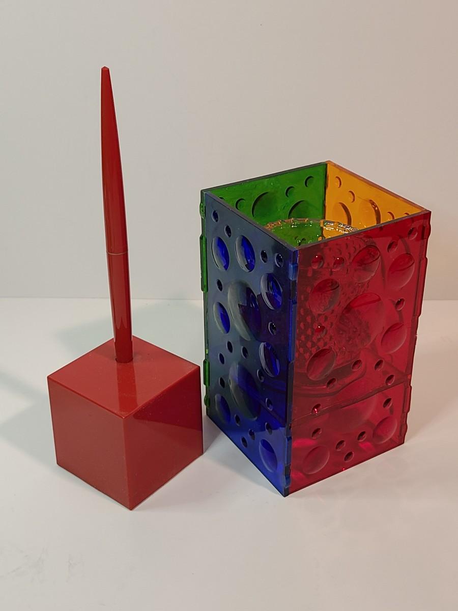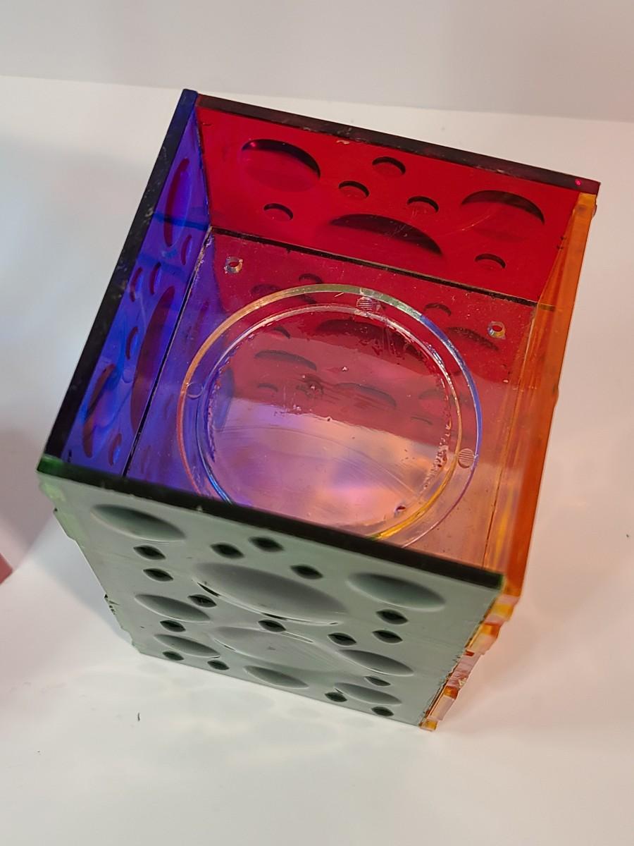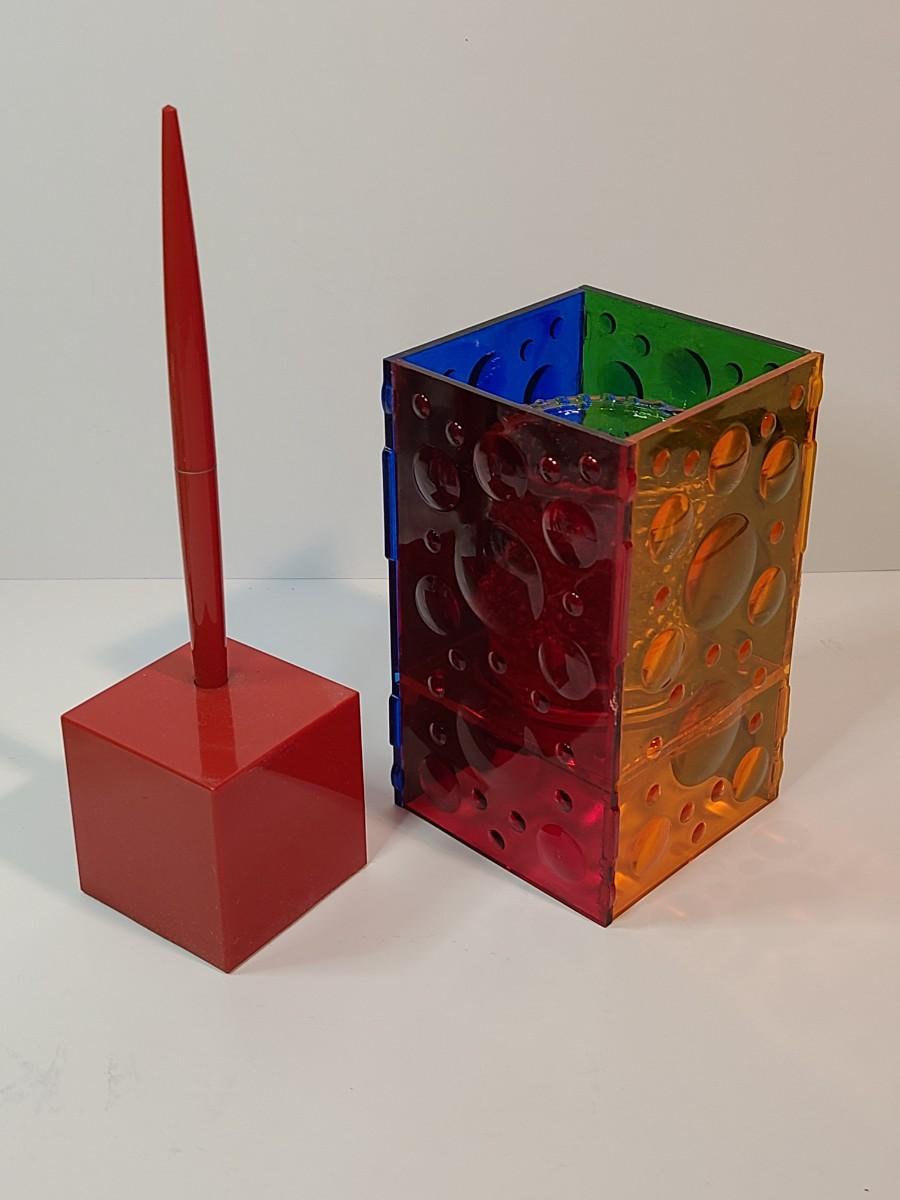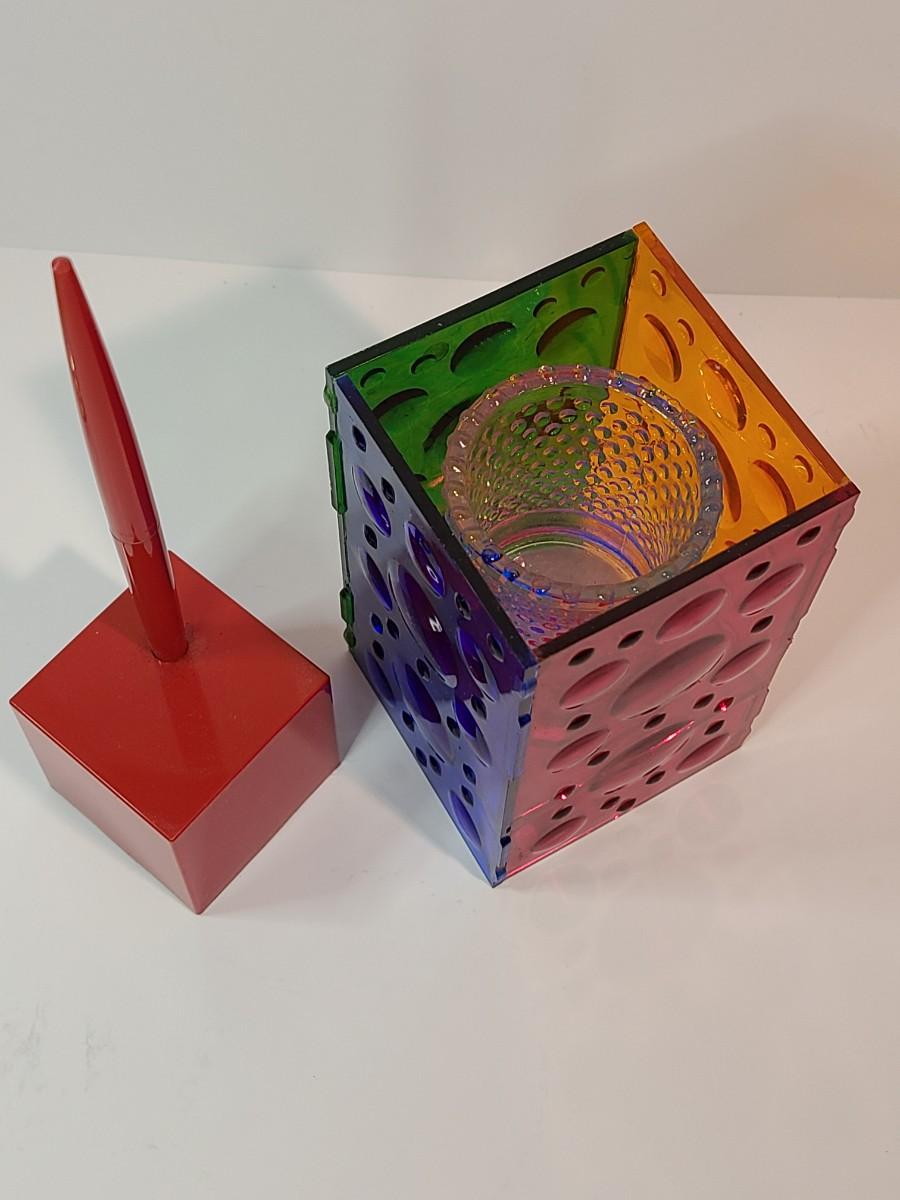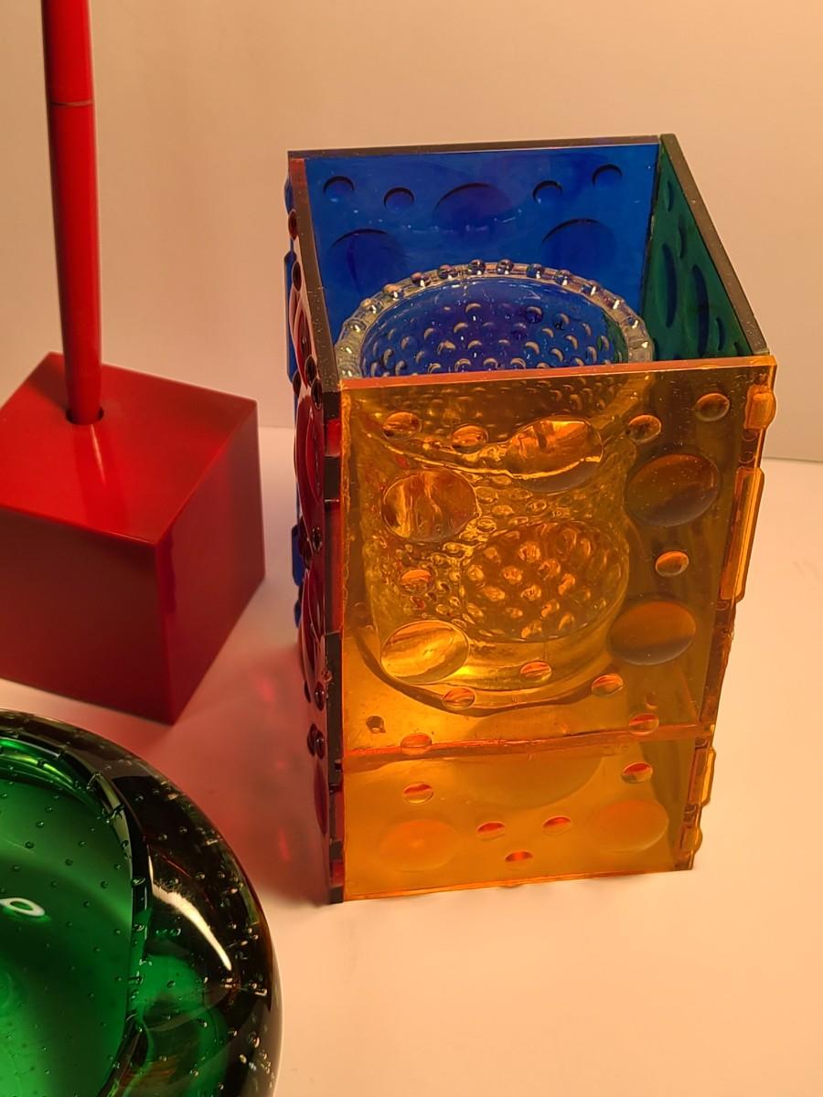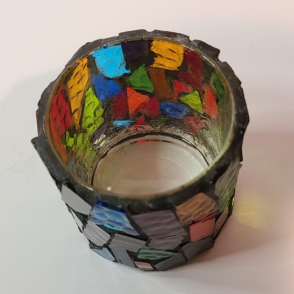 Vintage MCM votive holders, one is like stained glass mosaic around, and the other is a plastic cube that glows through when lit. Also included is a glass paperweight that can hold pen or flower stem, and green bubble art glass bowl. Fun lot of vintage decor. Please see all pictures as they are the best representation of the items. The pictures show condition, measurements if taken, and what is included in the lot. Due to the large amount that we photograph and the time frame, we are not always able to take measurements. All items unless noted, are pre-owned and have been used. If you purchased furniture, you must bring help. We do not allow one person to carry large furniture out on their own. Bring help, tools and a truck for the safety of our client’s homes, and your personal safety. Company policy. Thank you.