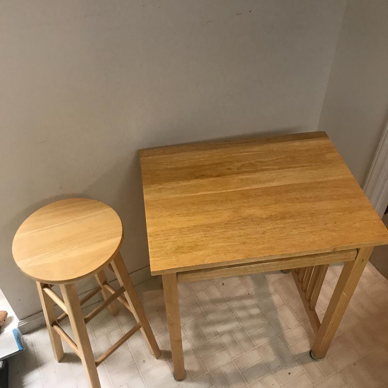 Stool stands 29” tall and desk measures 26” x20” x30” and has a pull out keyboard drawer. Both pieces are in good condition and sturdy. Local pick up only. Will need to move up a flight of stairs.