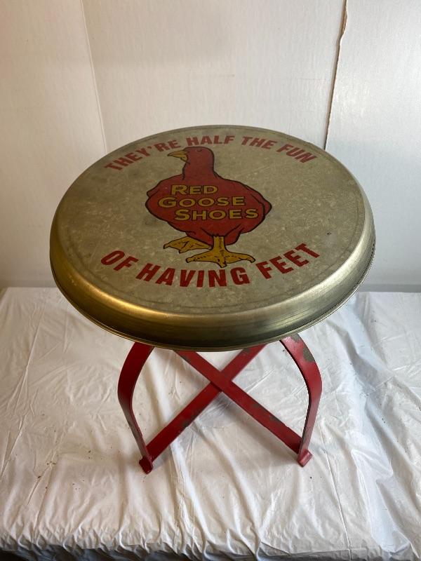 Lot 215 s 1950'S RED GOOSE SHOES METAL STORE STOOL
