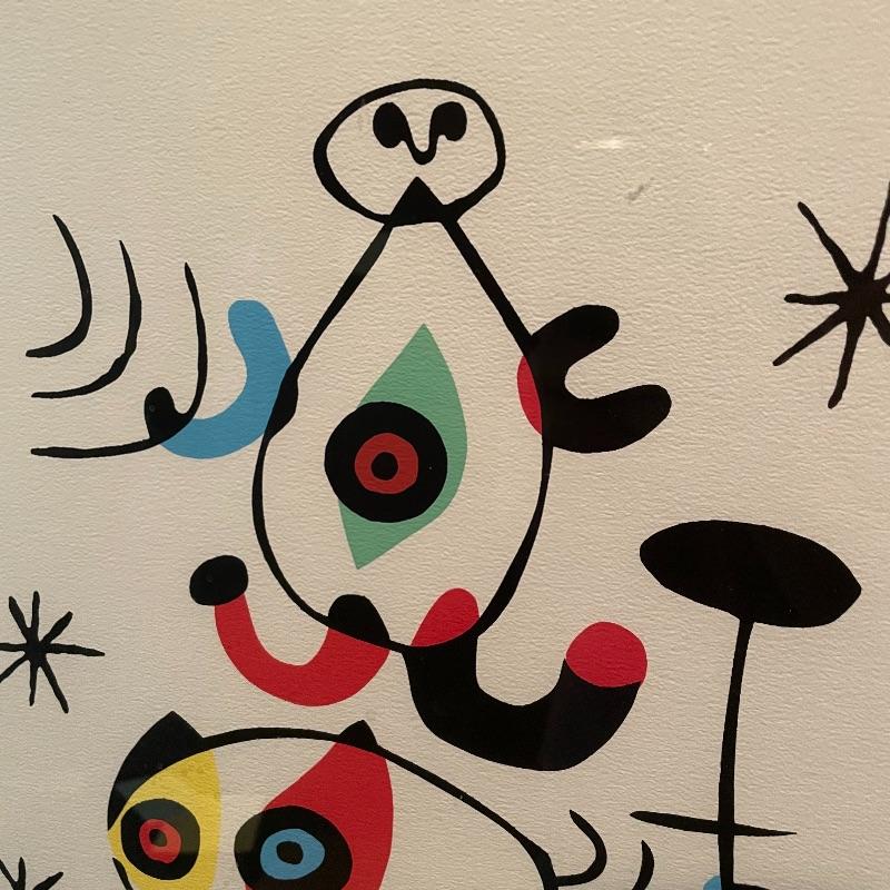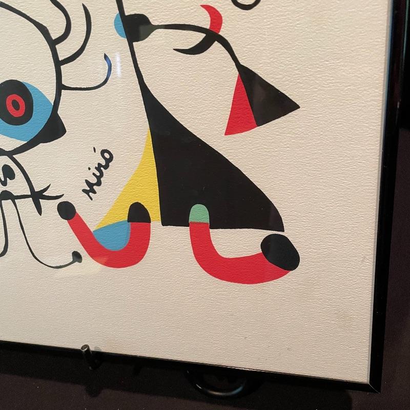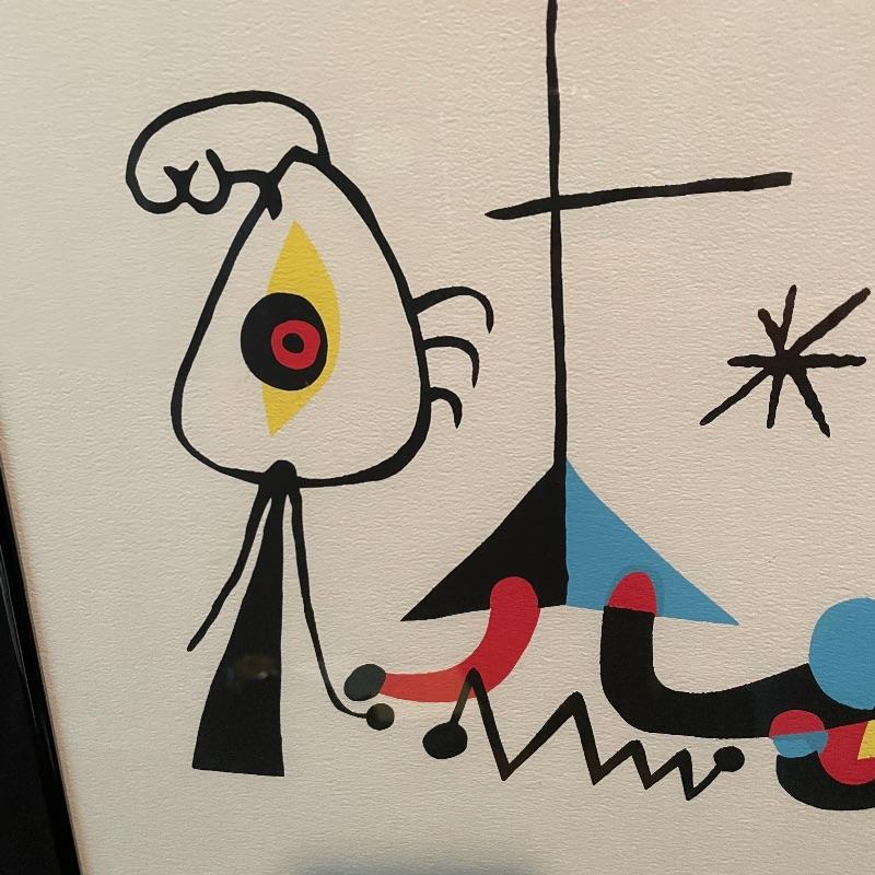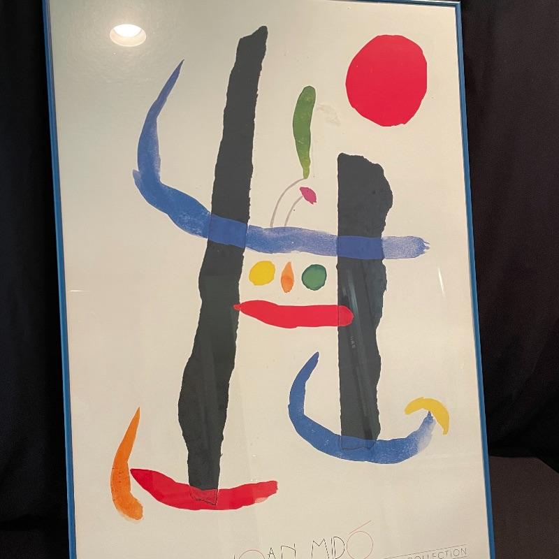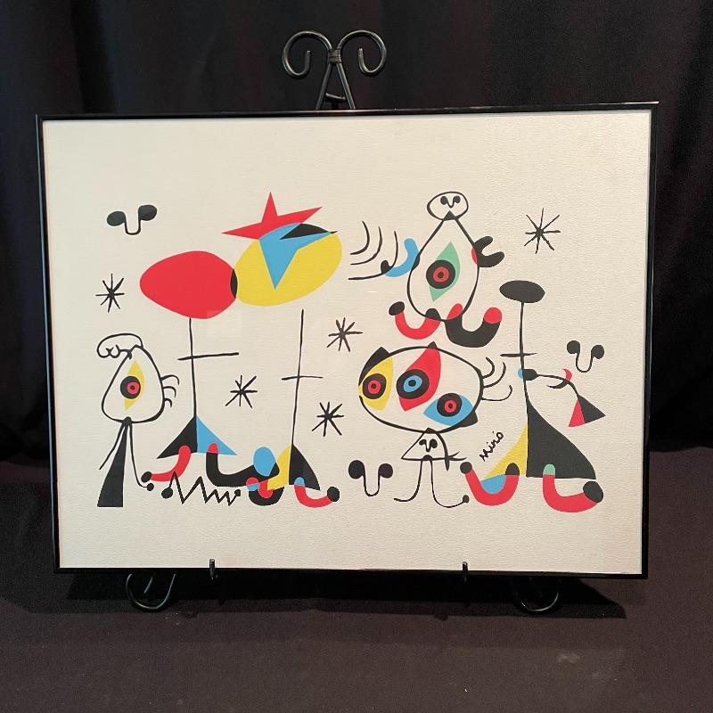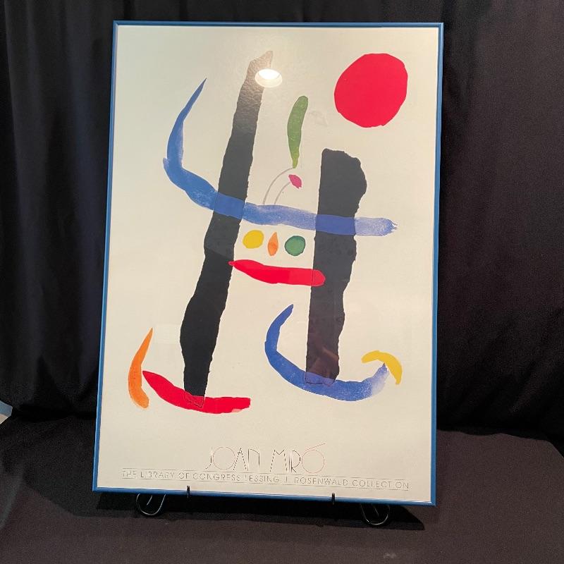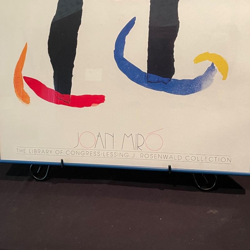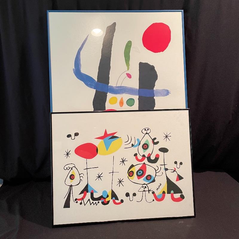 Two amazing pieces featuring famous artist Joan Miro. The way he captures colors and personality is beyond words. The first piece appears on a slightly textured sketchbook style paper. The other larger art is from the Library of Congress. Both art are without mat in sturdy metal frames. The smaller is approximately 26” x 20.25”. The larger poster is about 26.25” x 37”. Shipping available. Please call UPS with dimensions at 828-252-6930 for a shipping quote prior to bidding.