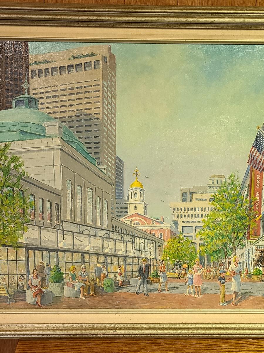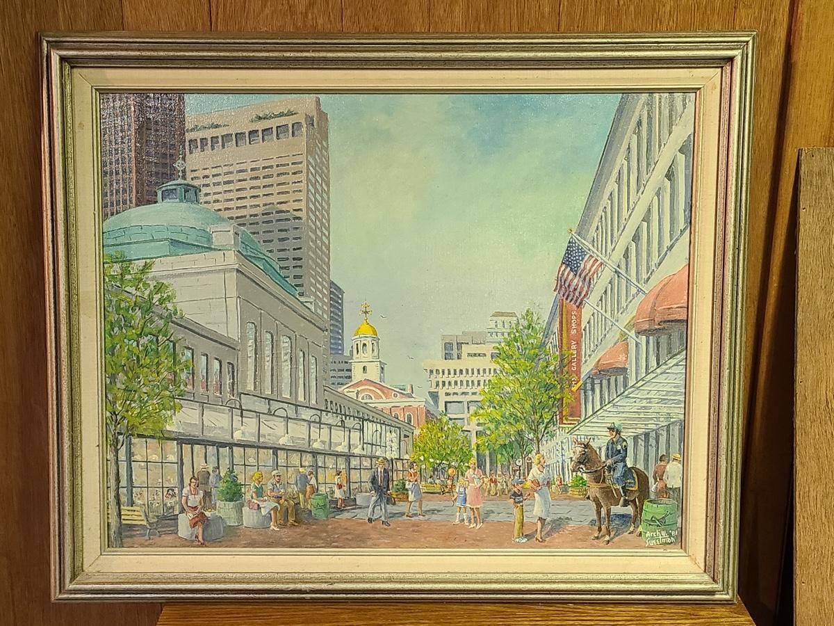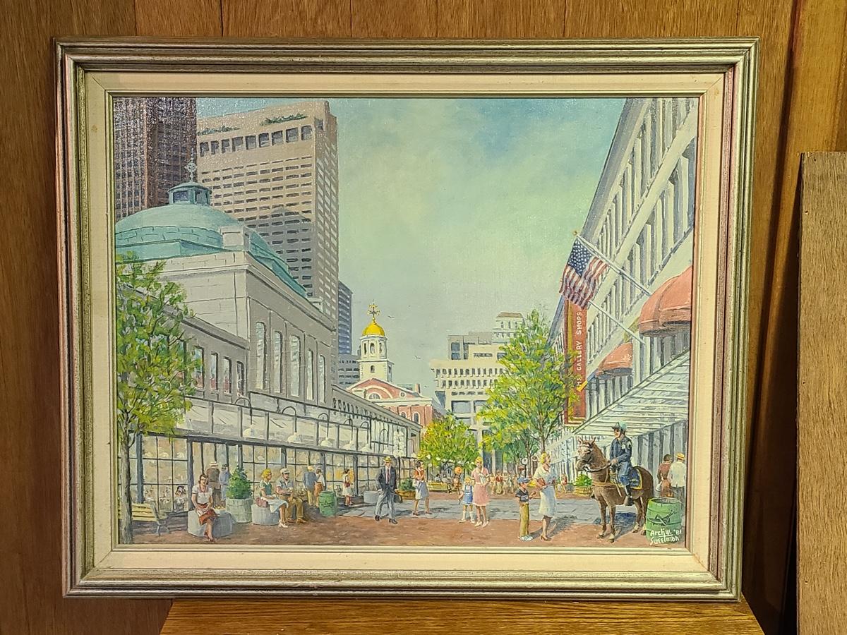 Gorgeous painting of Quincy Market. Please see all pictures. The pictures show condition, measurements if taken, and what is included in the lot. Due to the large amount that we photograph and the time frame, we are not always able to take measurements. All items unless noted, are pre-owned and have been used. If you purchased furniture, you must bring help. We do not allow one person to carry large furniture out on their own. Bring help, tools and a truck for the safety of our client’s homes, and your personal safety. Company policy. Thank you