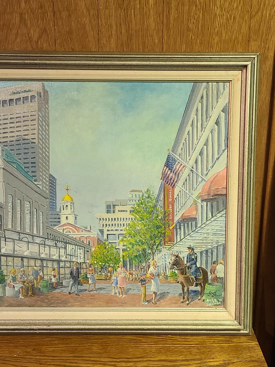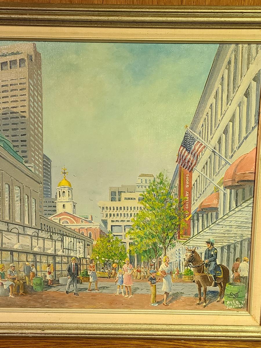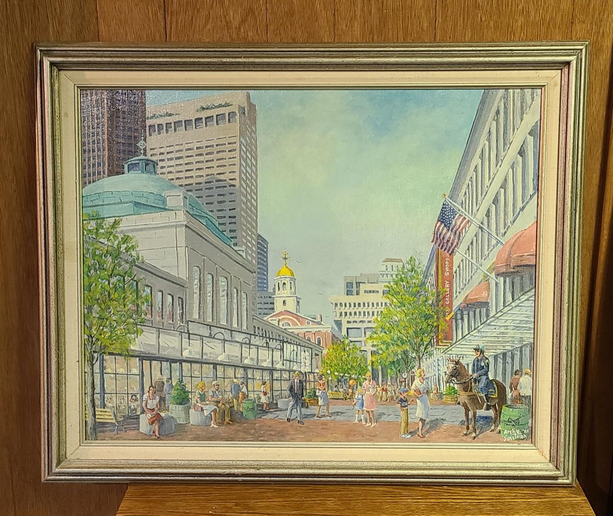 Gorgeous painting of Quincy Market. Please see all pictures. The pictures show condition, measurements if taken, and what is included in the lot. Due to the large amount that we photograph and the time frame, we are not always able to take measurements. All items unless noted, are pre-owned and have been used. If you purchased furniture, you must bring help. We do not allow one person to carry large furniture out on their own. Bring help, tools and a truck for the safety of our client’s homes, and your personal safety. Company policy. Thank you
