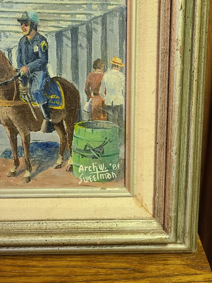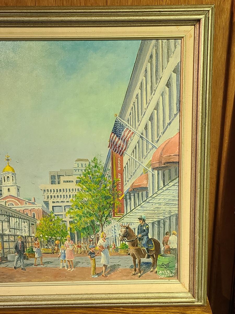 Lot 215: Vintage Boston, Quincy Market Painting on Canvas by Arch W. Sweetman 81' (1895-1995)