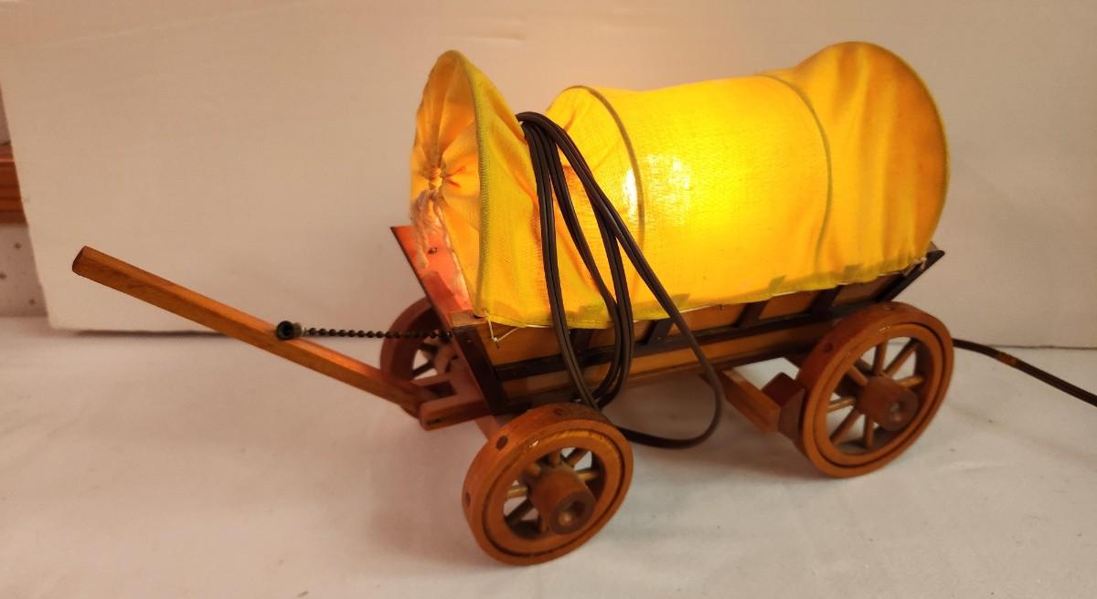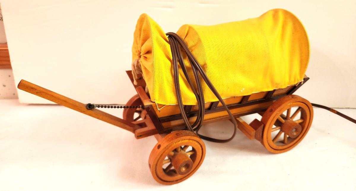 Vintage Conestoga Wagon lamp - push down handle to turn on/off - works great, 1960's, 14" long.