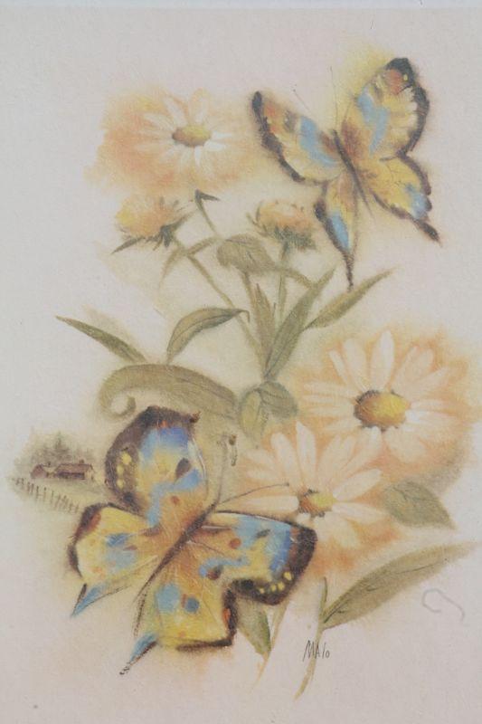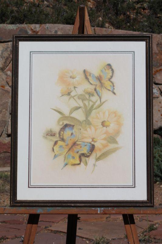 Lot 2-155: Vintage Butterfly and Flower Theme SIGNED Original Artwork {21.5" x 17.5"}