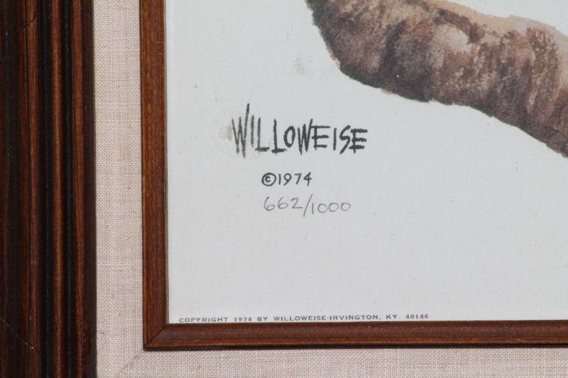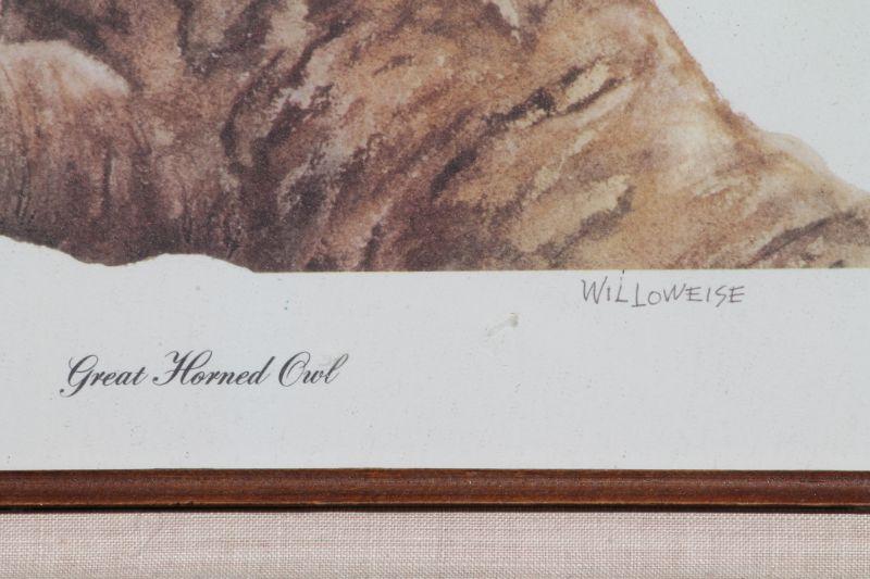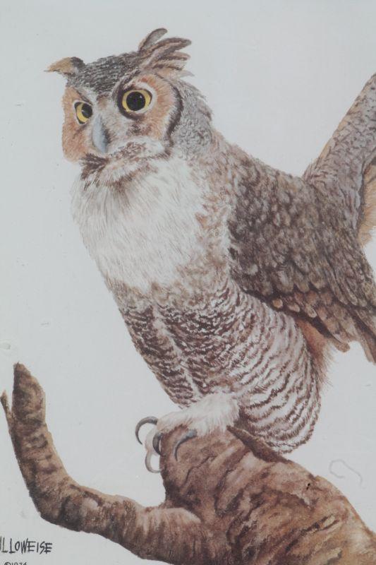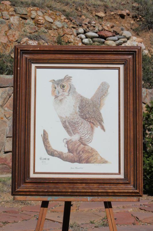 Lot 2-156: Vintage Framed 1974 Signed WILLOWEISE Owl Numbered Artwork #662/1000 "Great Horned Owl" {28" x 25"}