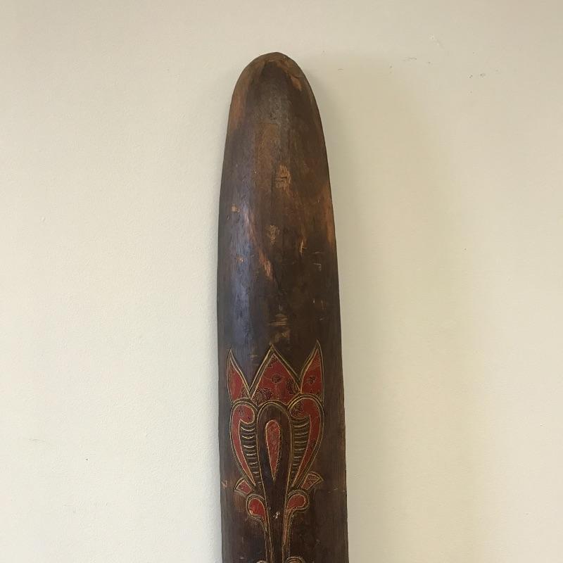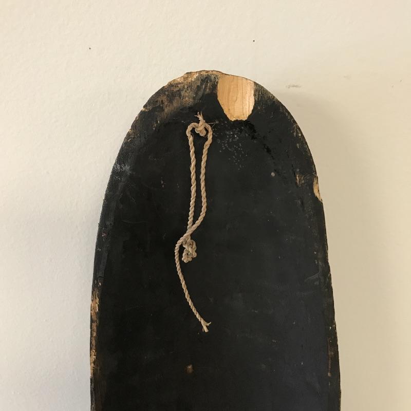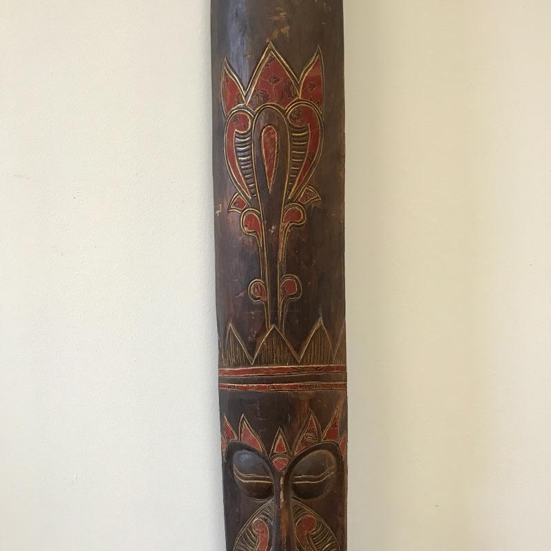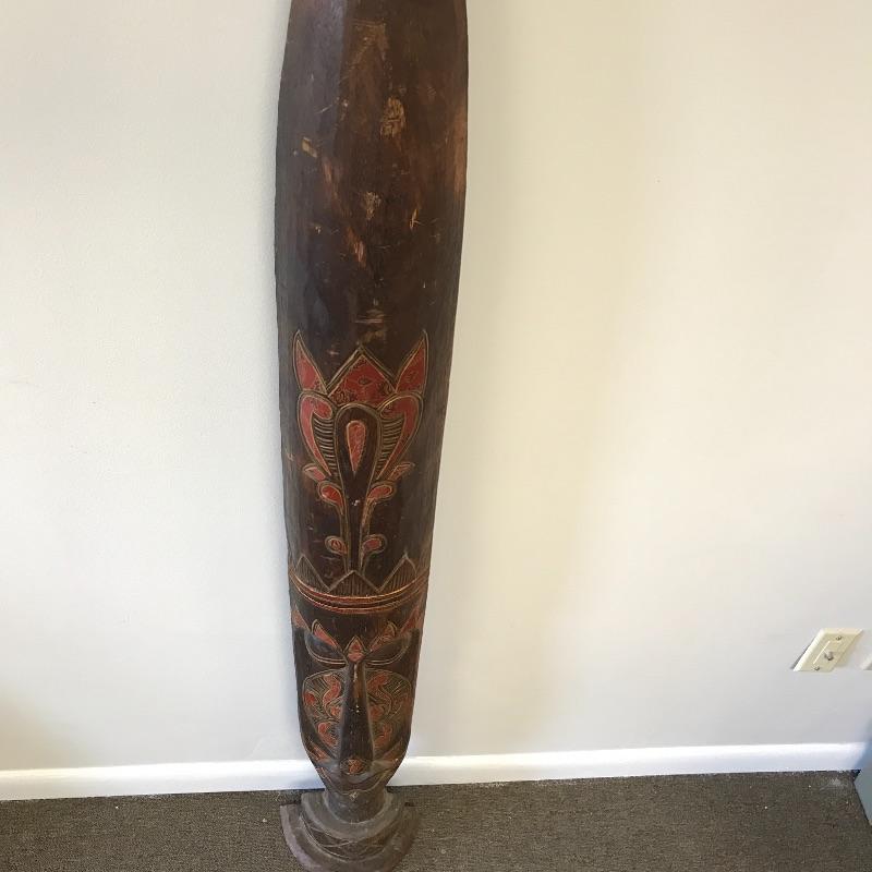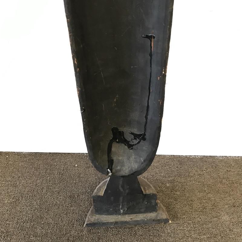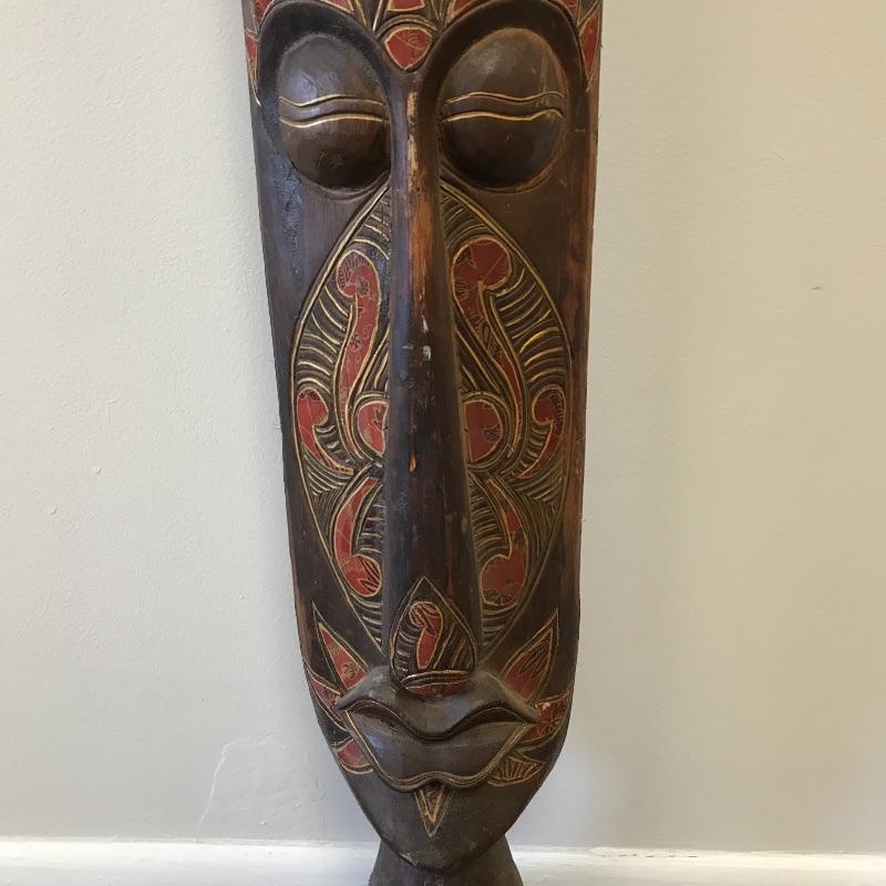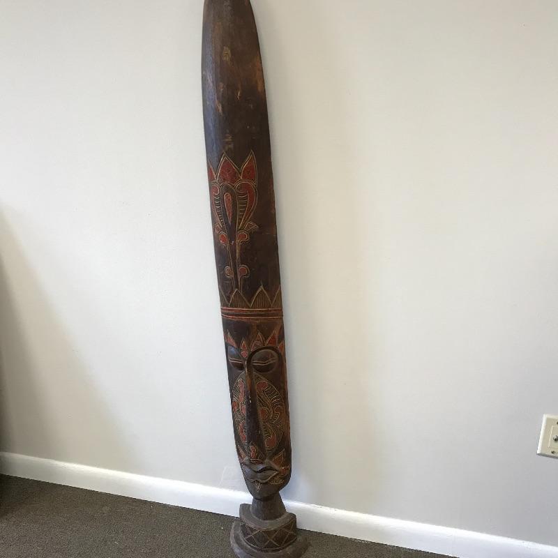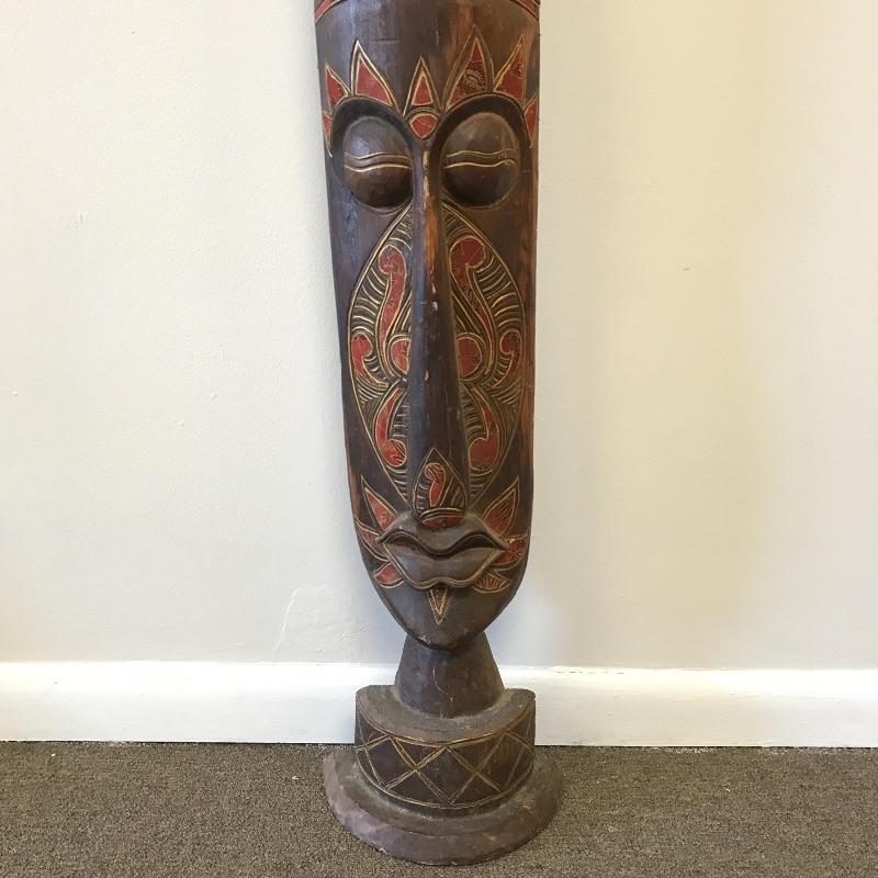 This large face is made of a light wood material. It’s tall and skinny and can make a statement in a small space. There was some damage on the bottom that was glued but hardly noticeable on the front. Measures 9.5 x 5.5” x 60” tall. Local Pickup Only.