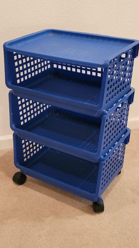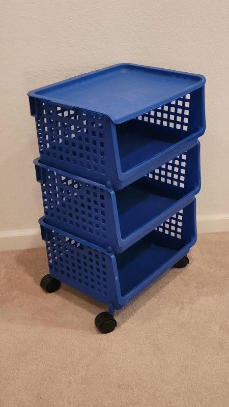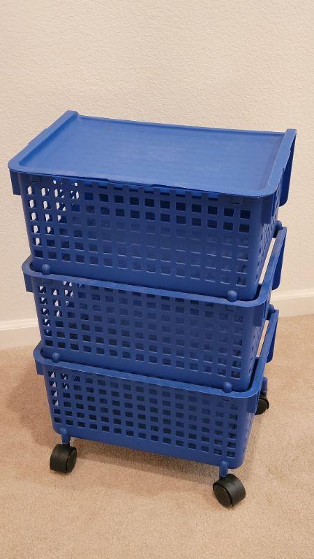 Lot 216: Set of Stackable Organizer Bins on Wheels