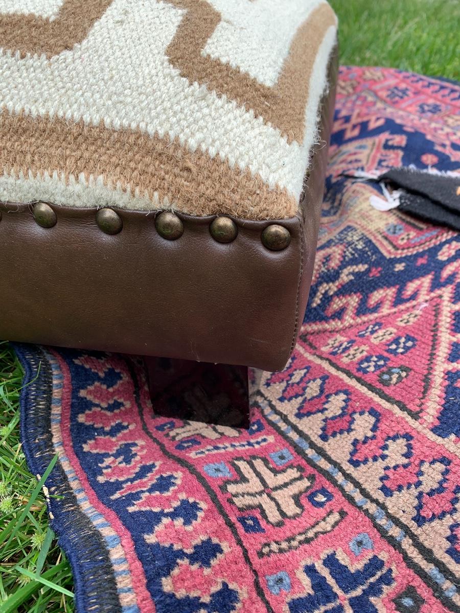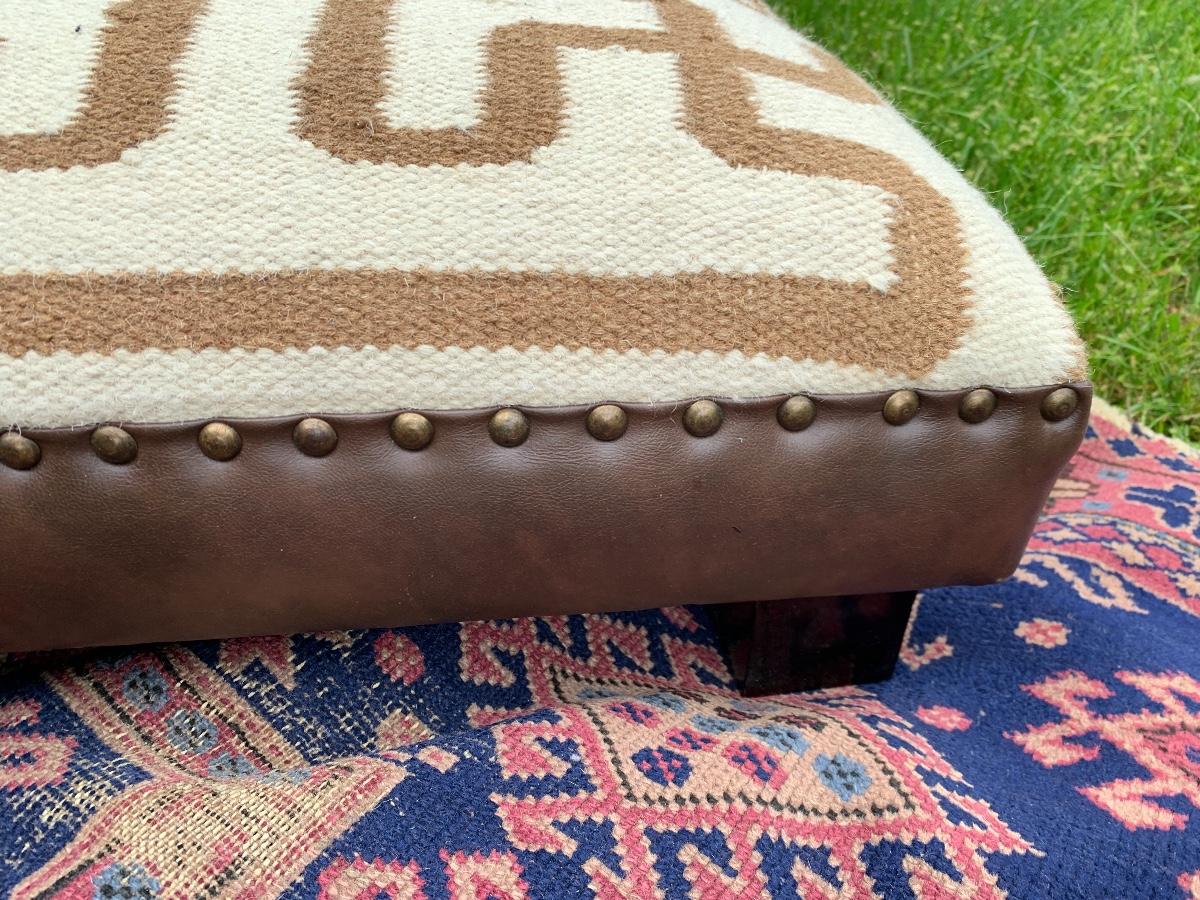 Lot 216:  Tribal/Boho Decor: Woven Wall Hanging, Large Cushioned Footstool & More