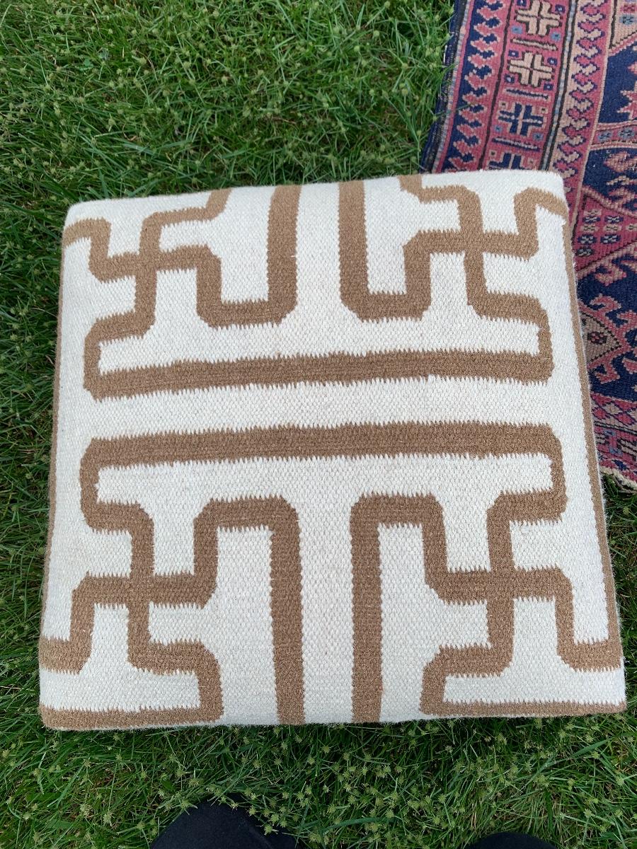 Lot 216: Tribal/Boho Decor: Woven Wall Hanging, Large Cushioned Footstool & More