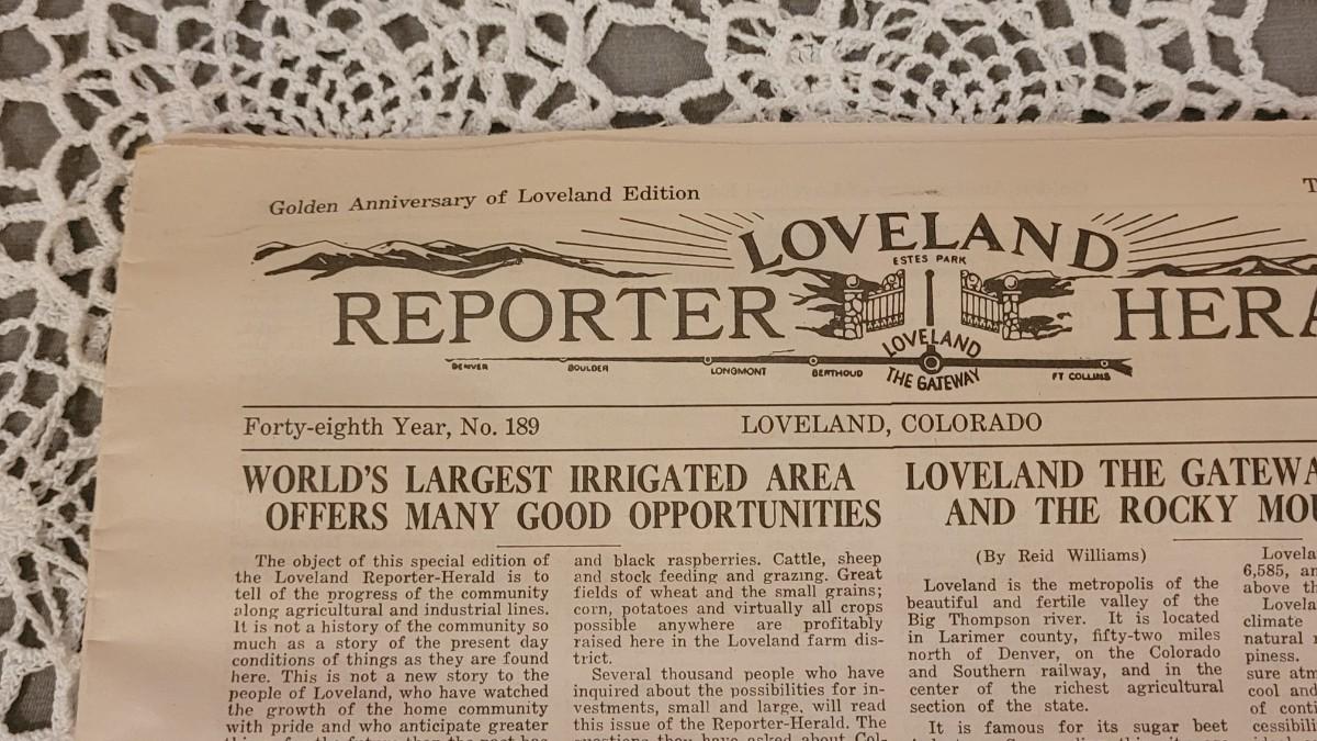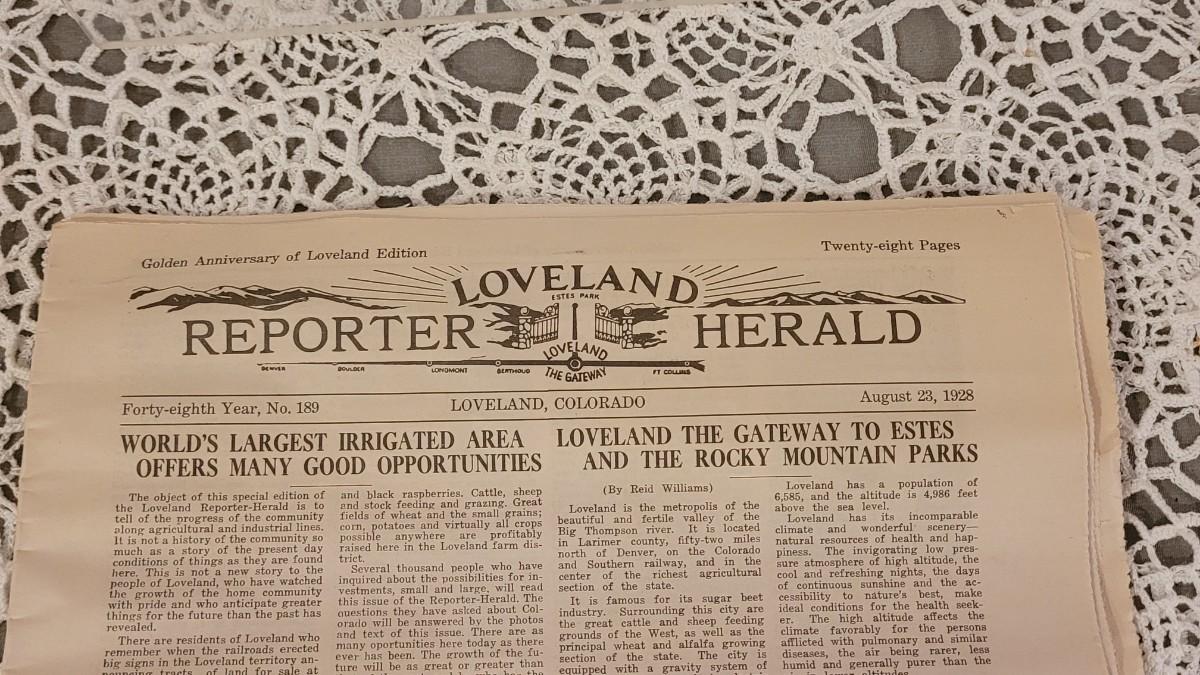 Lot 186: Golden Anniversary of the Loveland Reporter Herald 1978-  August 1928 Reprint Ephemera