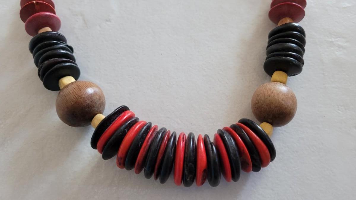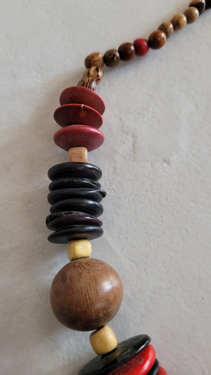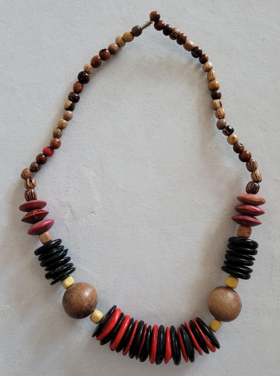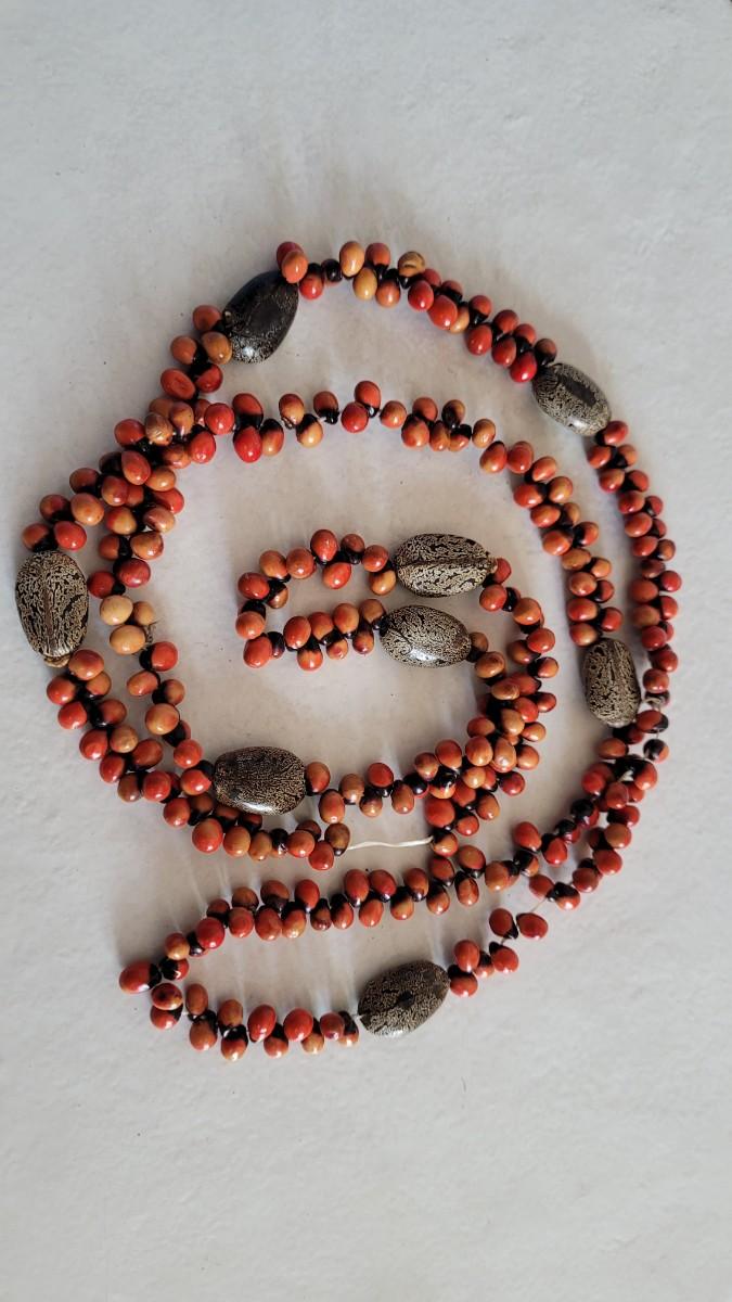 Red, orange, black wood and seed beads