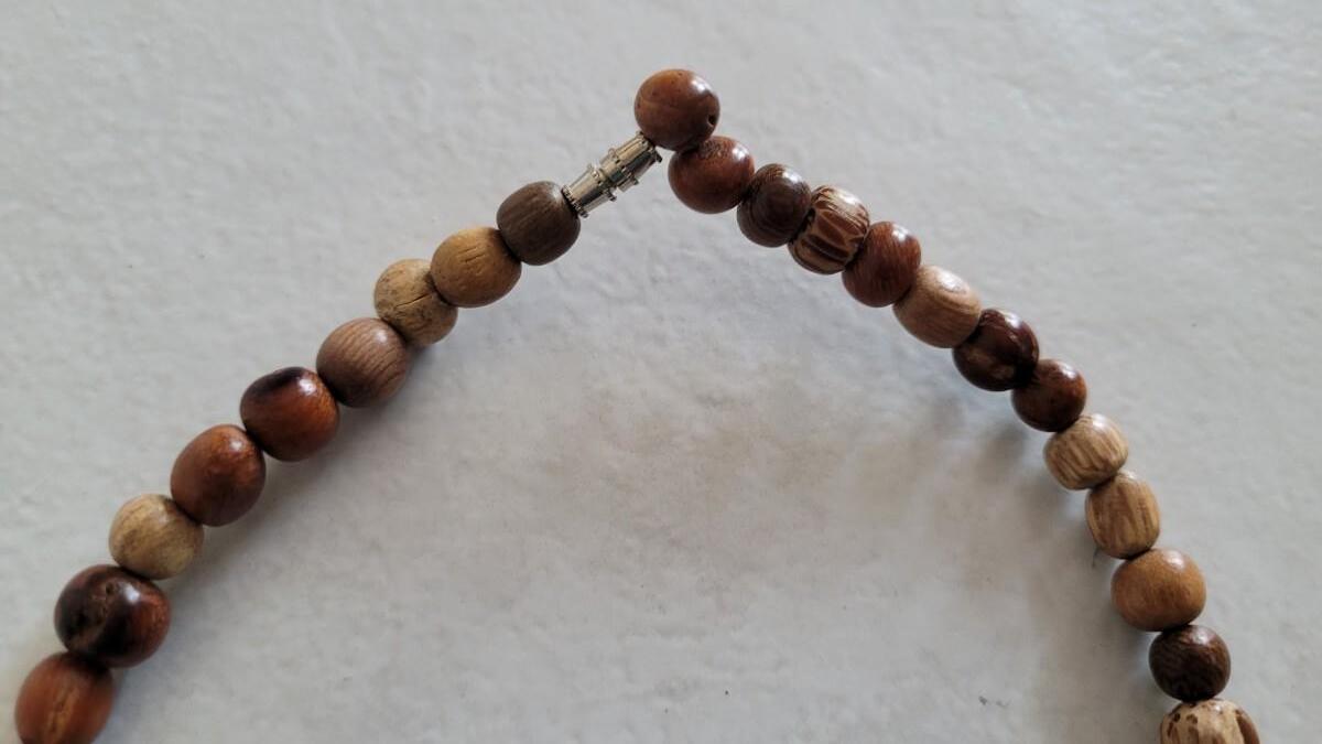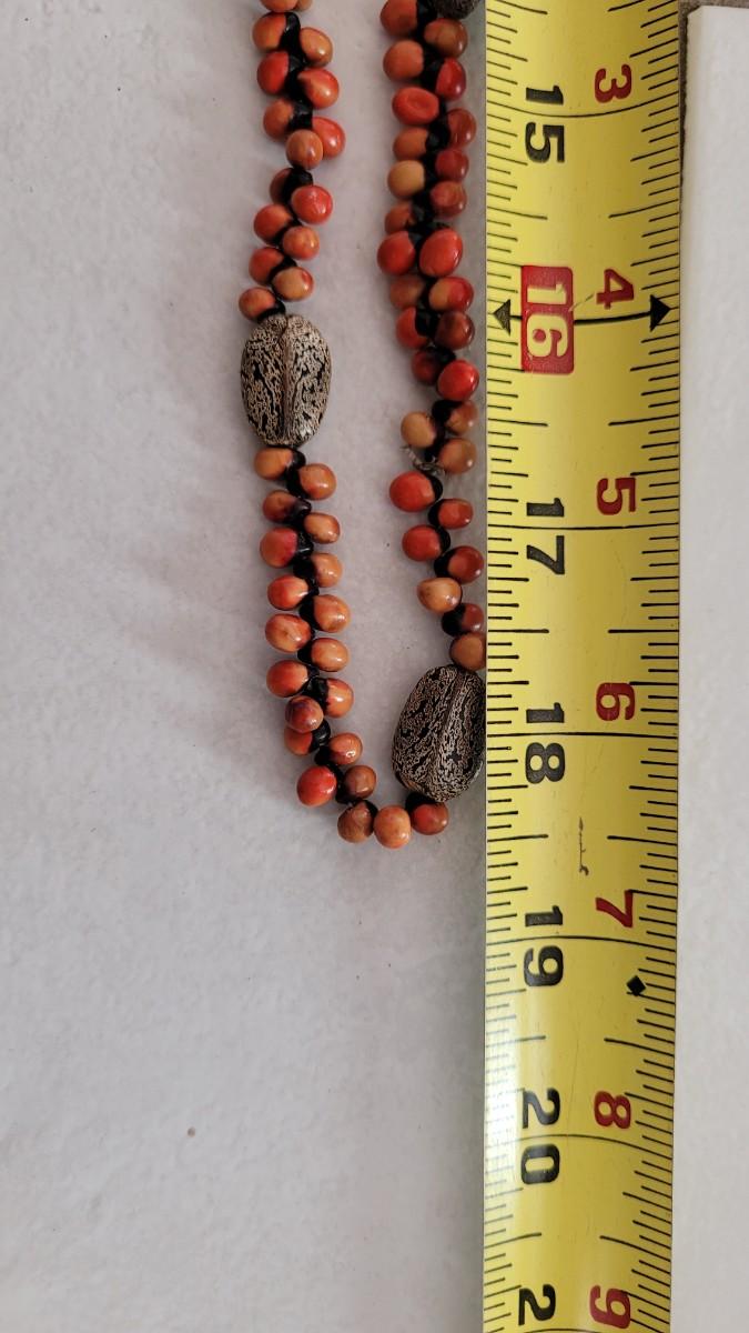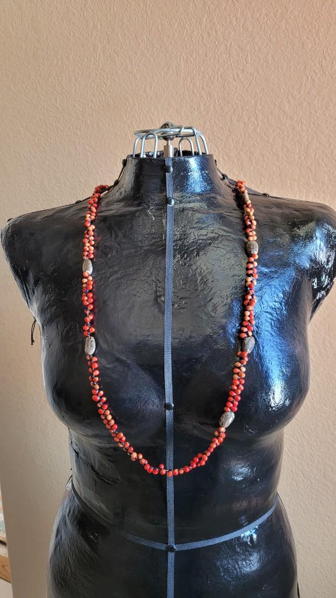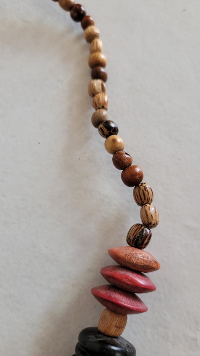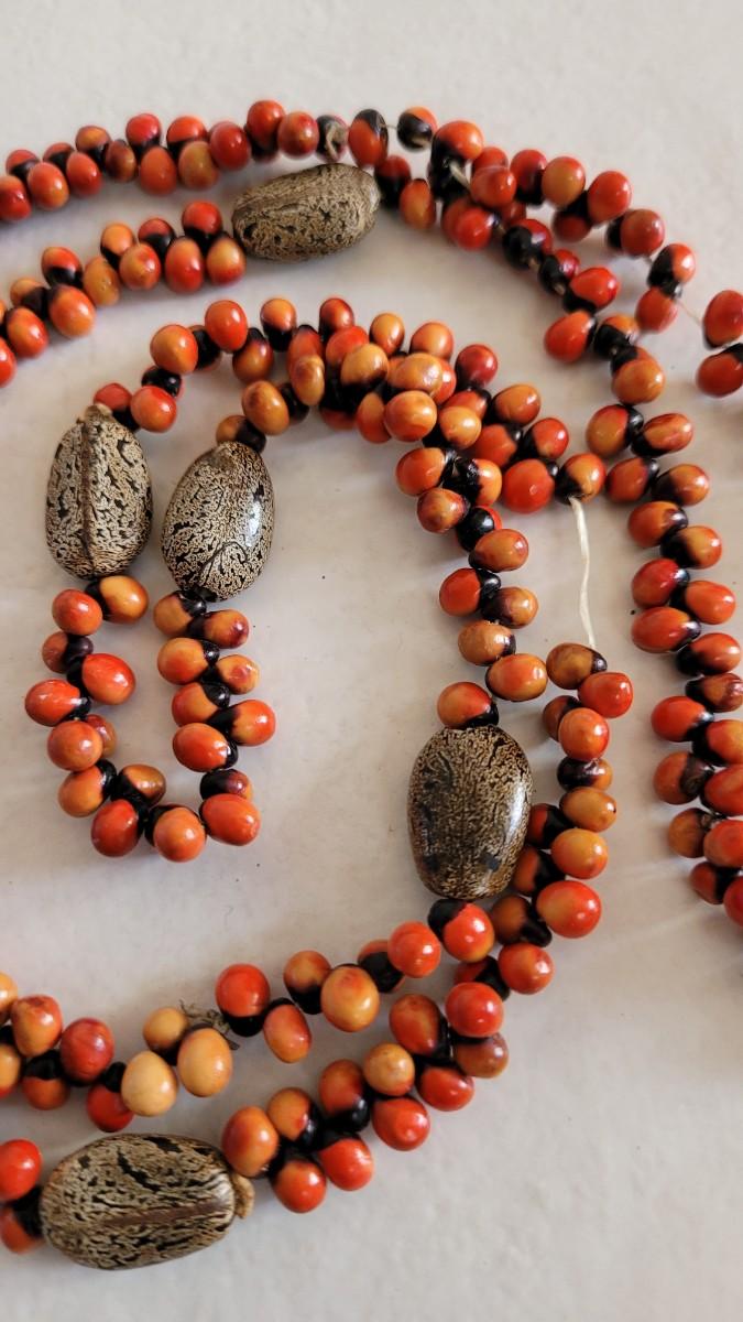 Red, orange, black wood and seed beads