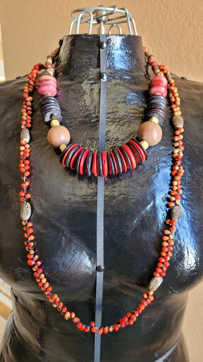 Lot 216: Vintage African Seed and Wooden Bead Necklaces (2)