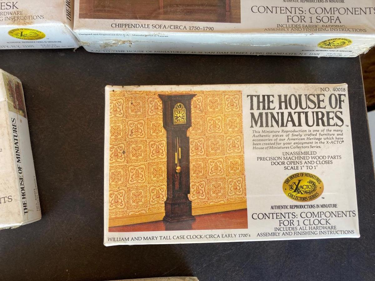 THIS LOT HAS THE EASY CHAIR, THE DAVENPORT, THE GRANDFATHER CLOCK, THE SIDE BAR AND DESK