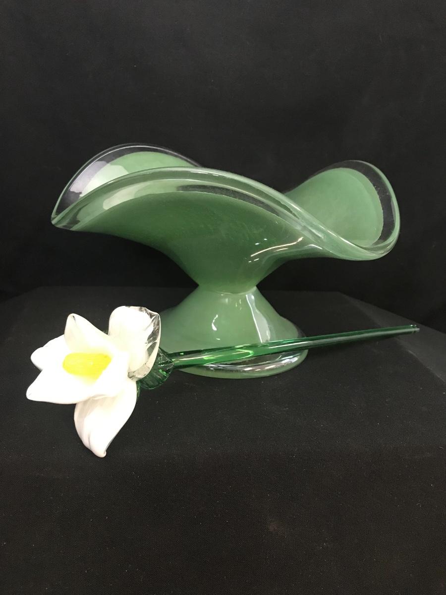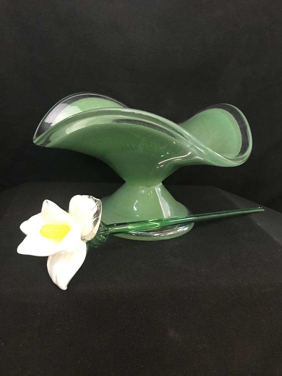 Art Glass - Long-stem Glass Flower & Lavorazione Arte Murano Glass Bowl. Flower has a small chip to the underside of one of its petals. Please see all pictures as they are the best representation of the items. The pictures show condition, measurements if taken, and what is included in the lot. Due to the large amount that we photograph and the time frame, we are not always able to take measurements. All items unless noted, are pre-owned and have been used. Please bring packing materials for your items. If you purchased furniture, you must bring help. We do not allow one person to carry large furniture out on their own. Bring help, tools and a truck for your personal safety. Company policy. Thank you.