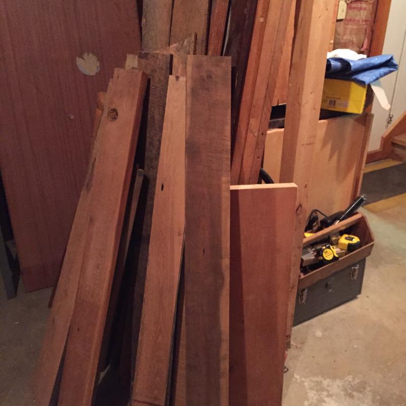 Assortment of Wood planks and raw hardwood pieces and barn wood pieces. Largest plank measures 92” x9” x1.5”.