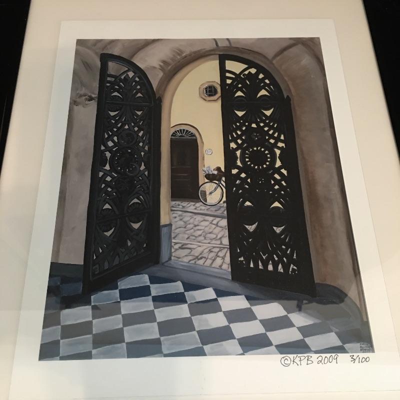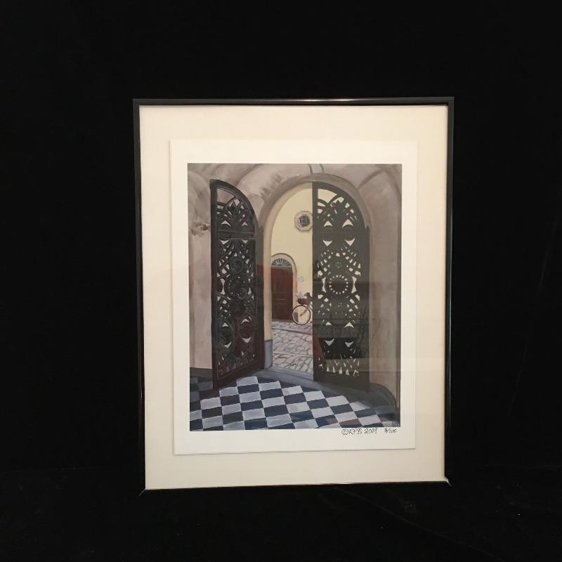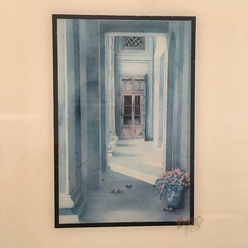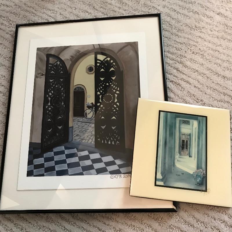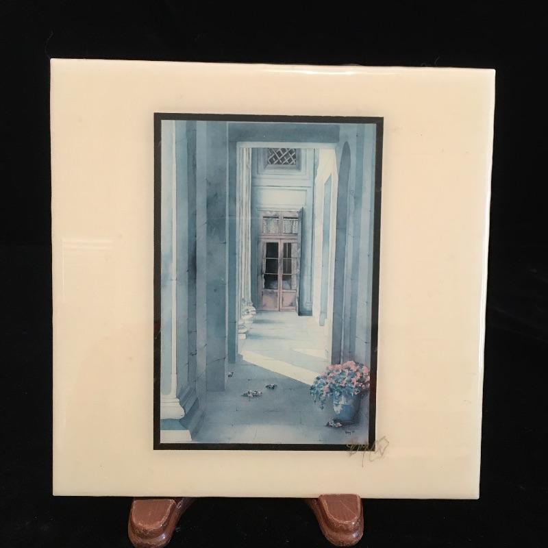 Framed entrance-way art is initialed, dated numbered, measuring 14” x 18” and is a really eye-catching and thought provoking piece. Also included is a similarly themed wall tile also depicting entrance-way art that is signed. Brighten up your home with these unique pieces of art.