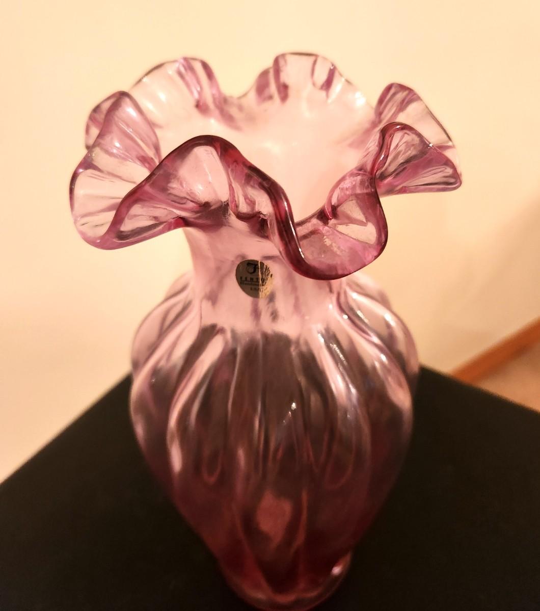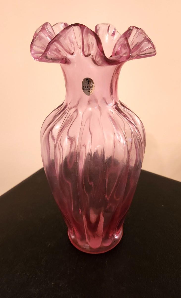 Fenton Art Glass Pink Ribbed vase - 11" tall - label. Good condition.