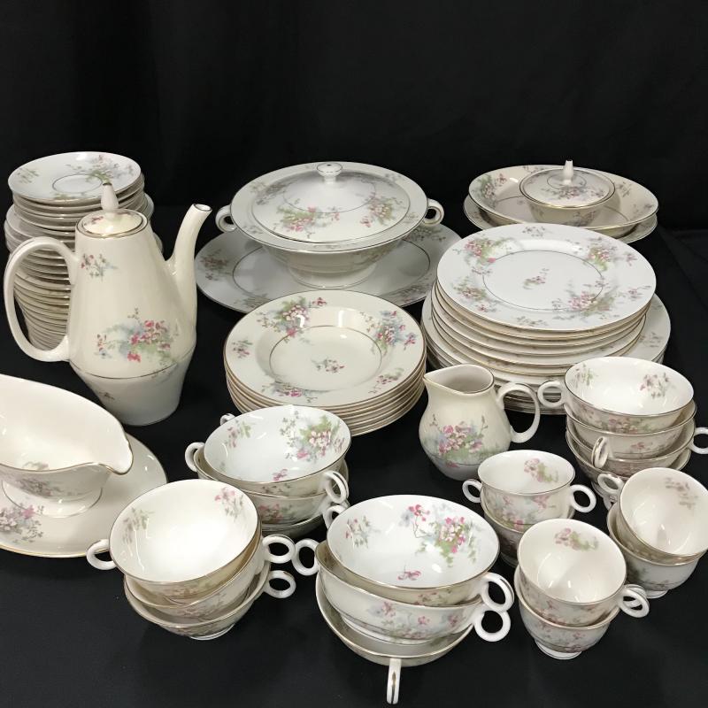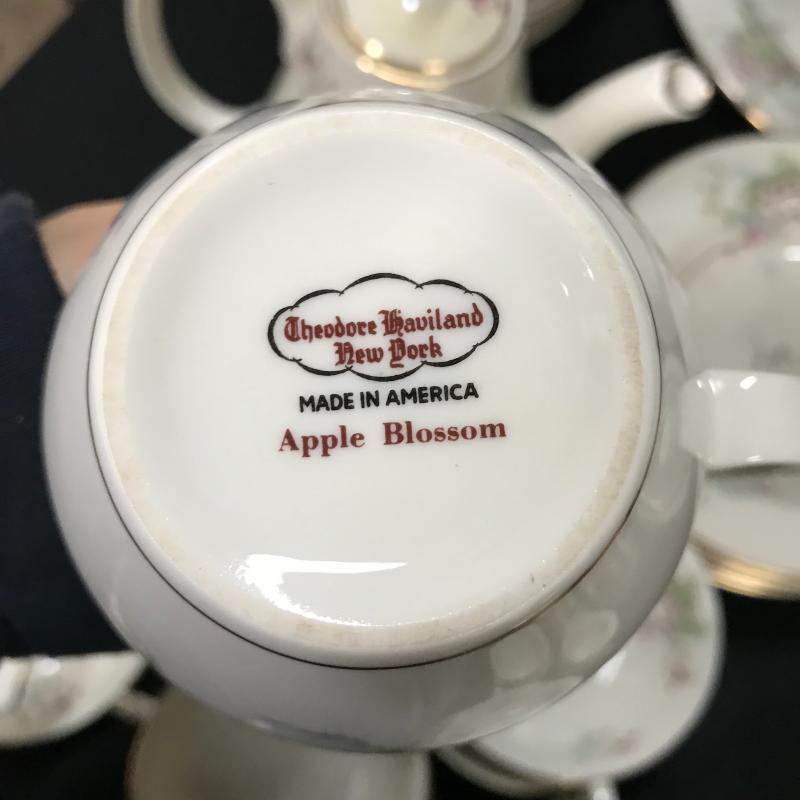 Haviland “Apple Blossom” China. 73 pieces in set including lids. No shipping available. Local pickup only in Asheville, NC.