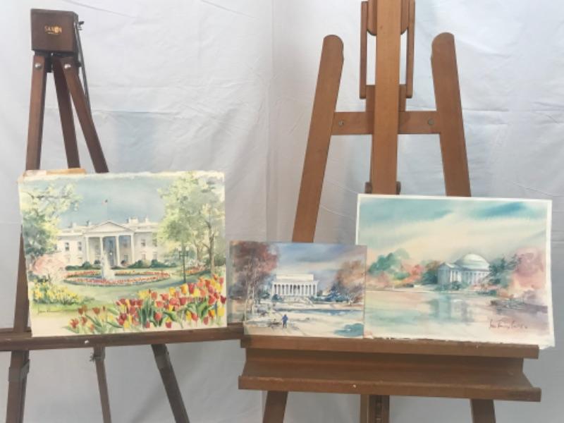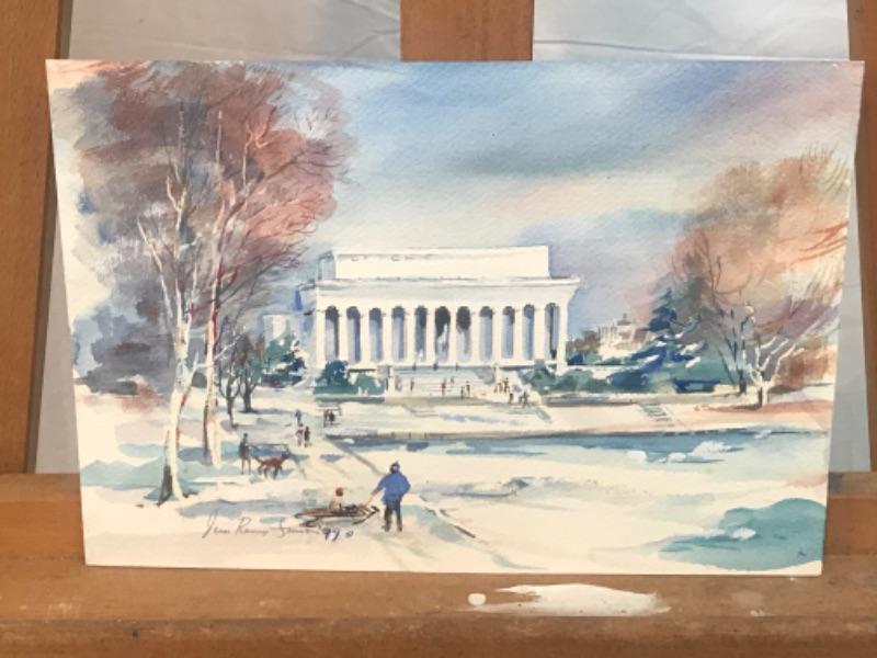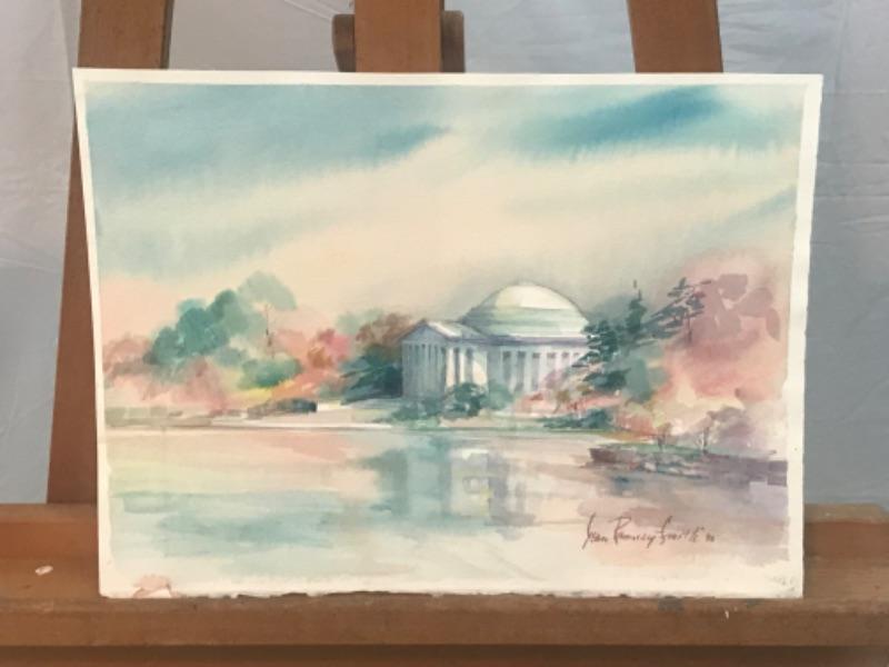 D - 216 Jean Ranney Smith Original Watercolor Paintings “Jefferson Memorial” “Lincoln Memorial” “White House”