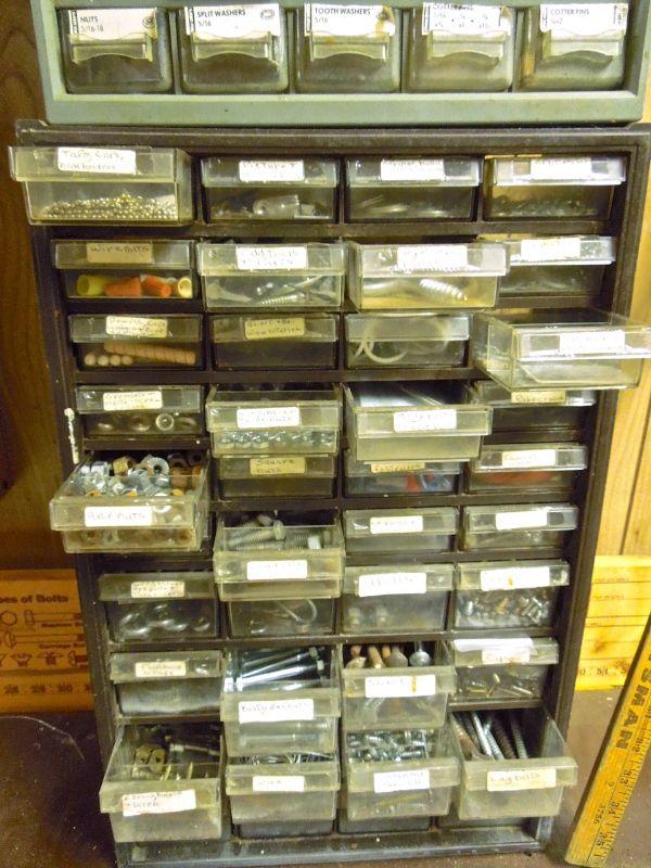 Lot 216: Mega Screws and Hardware in Storage Drawer Cabinets
