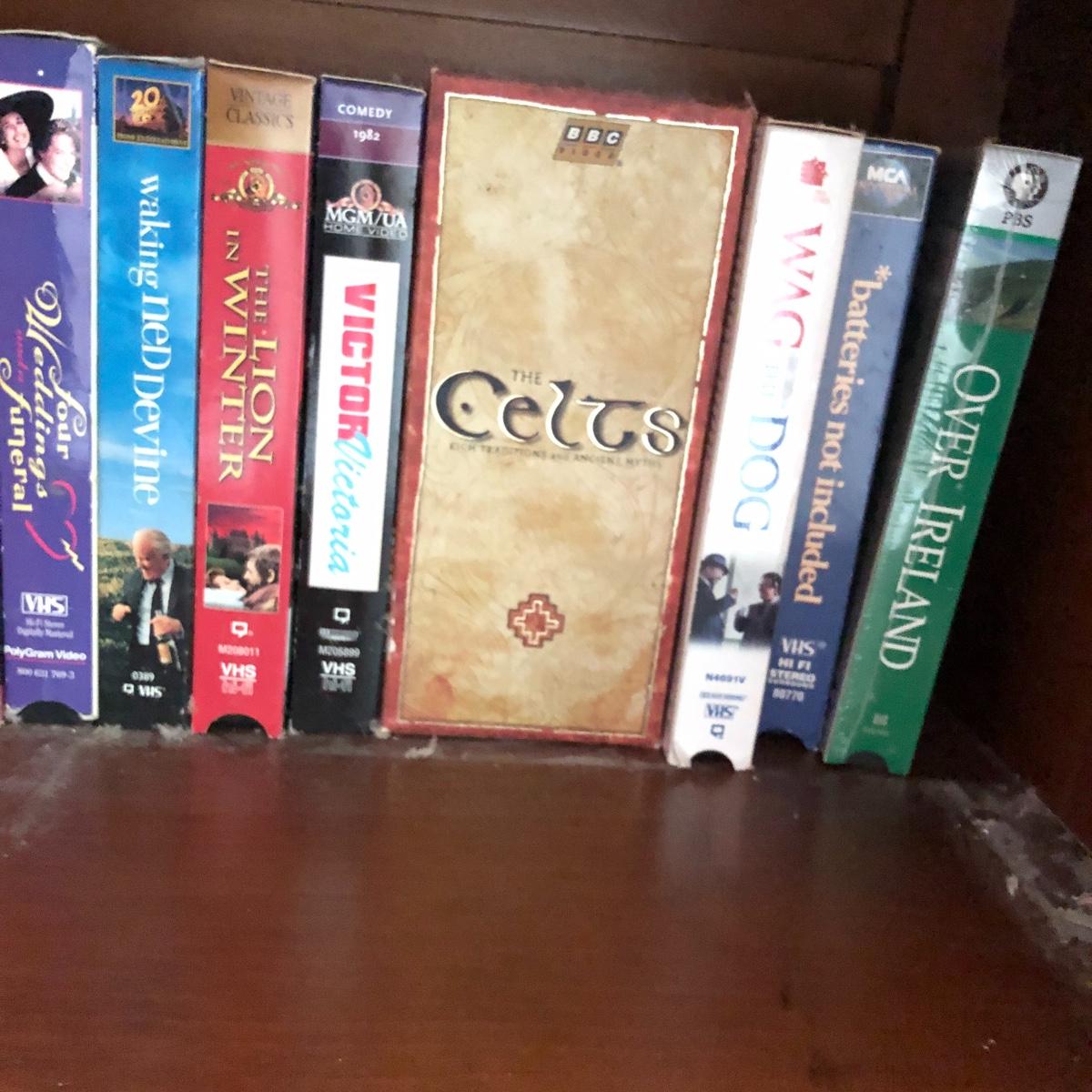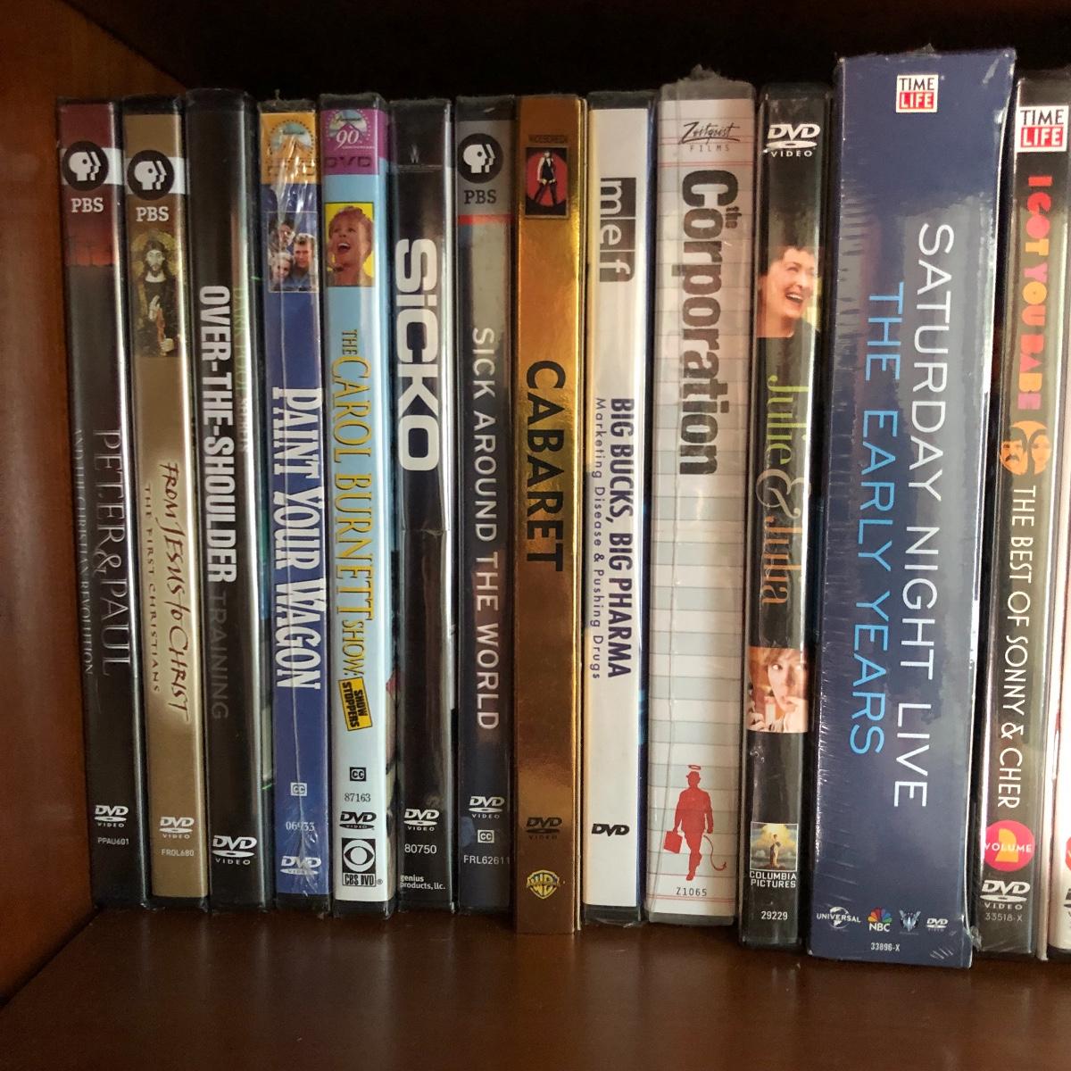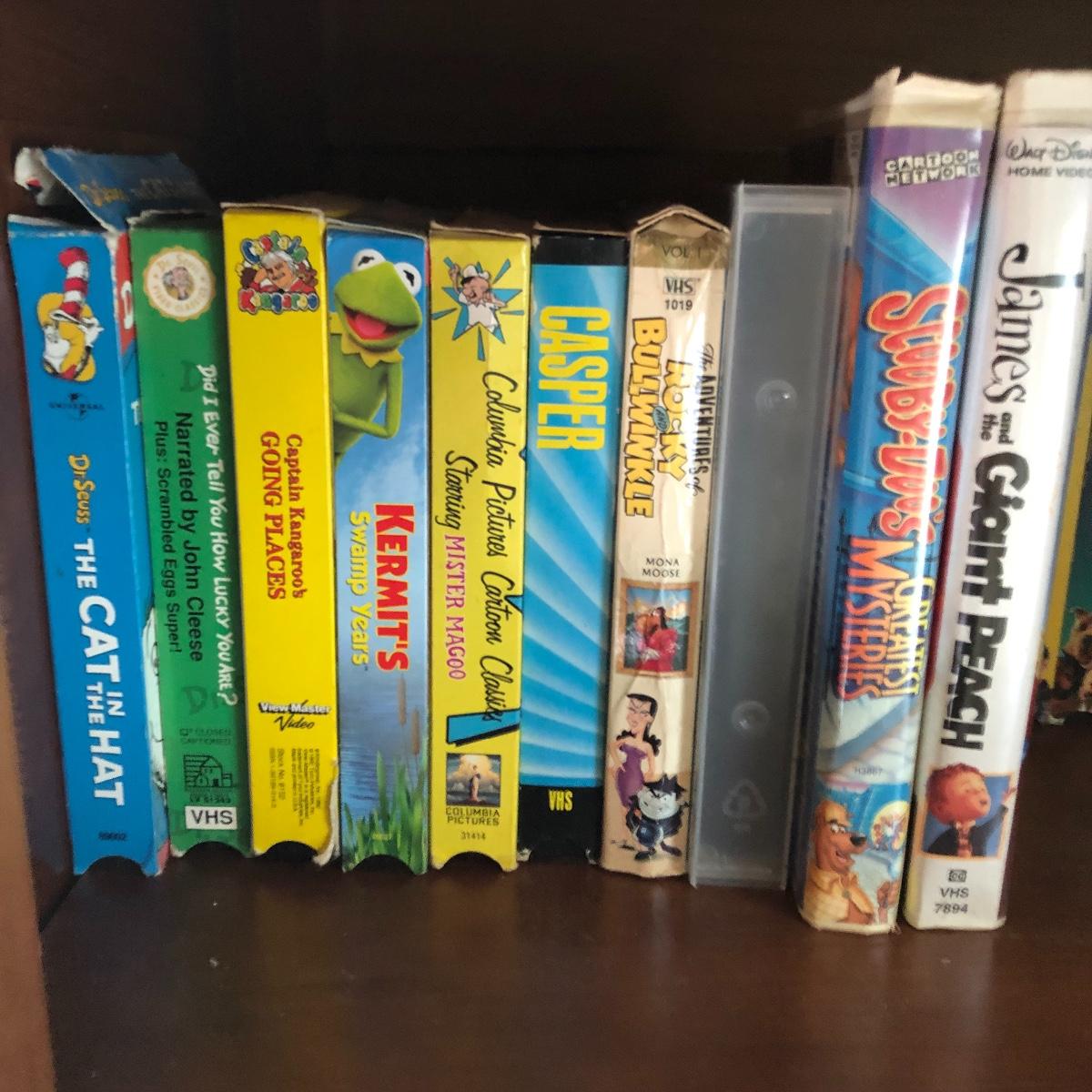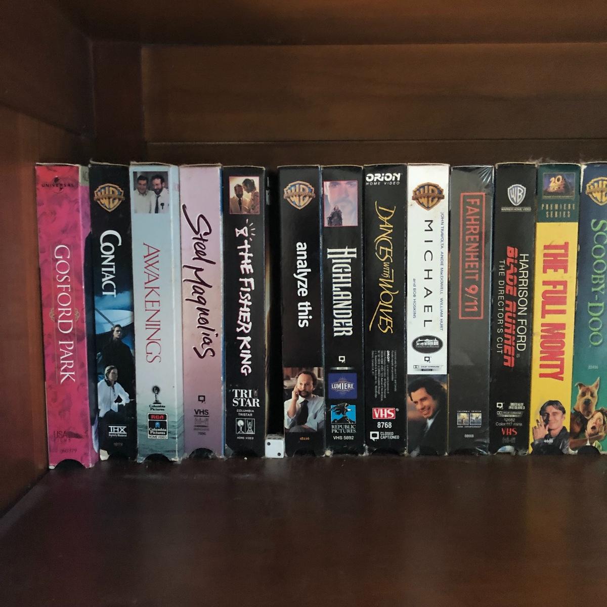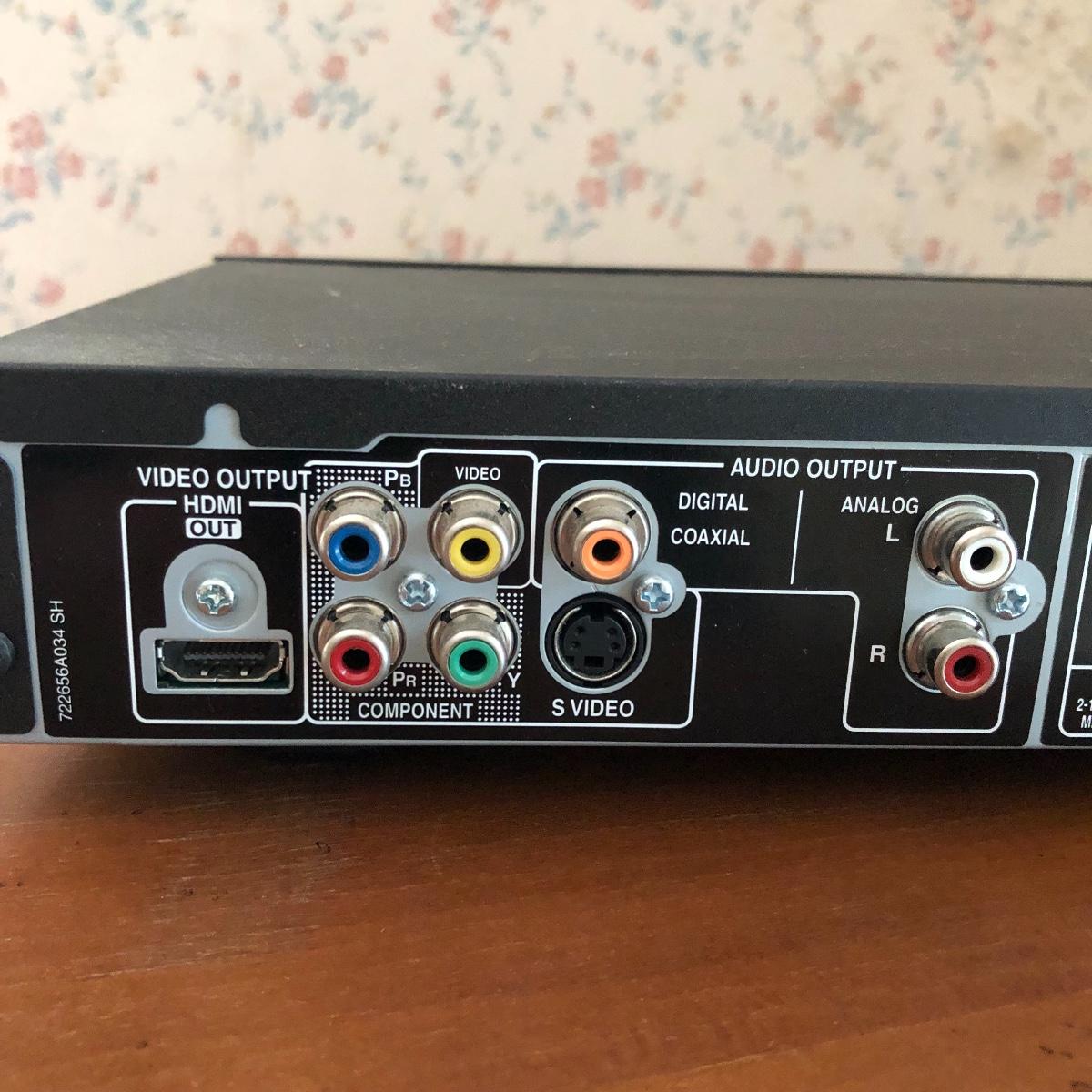 Enjoy a movie with this Onkyo DV-SP405 DVD player. Lot includes Onkyo DVD player and a selection of DVDs and VHS tapes. Titles include Downton Abbey season 1-6, Scooby Doo, Beetlejuice, Good Will Hunting, Beyond Narnia, Cabaret and more. Furniture pictured is not included but available in lot 227.