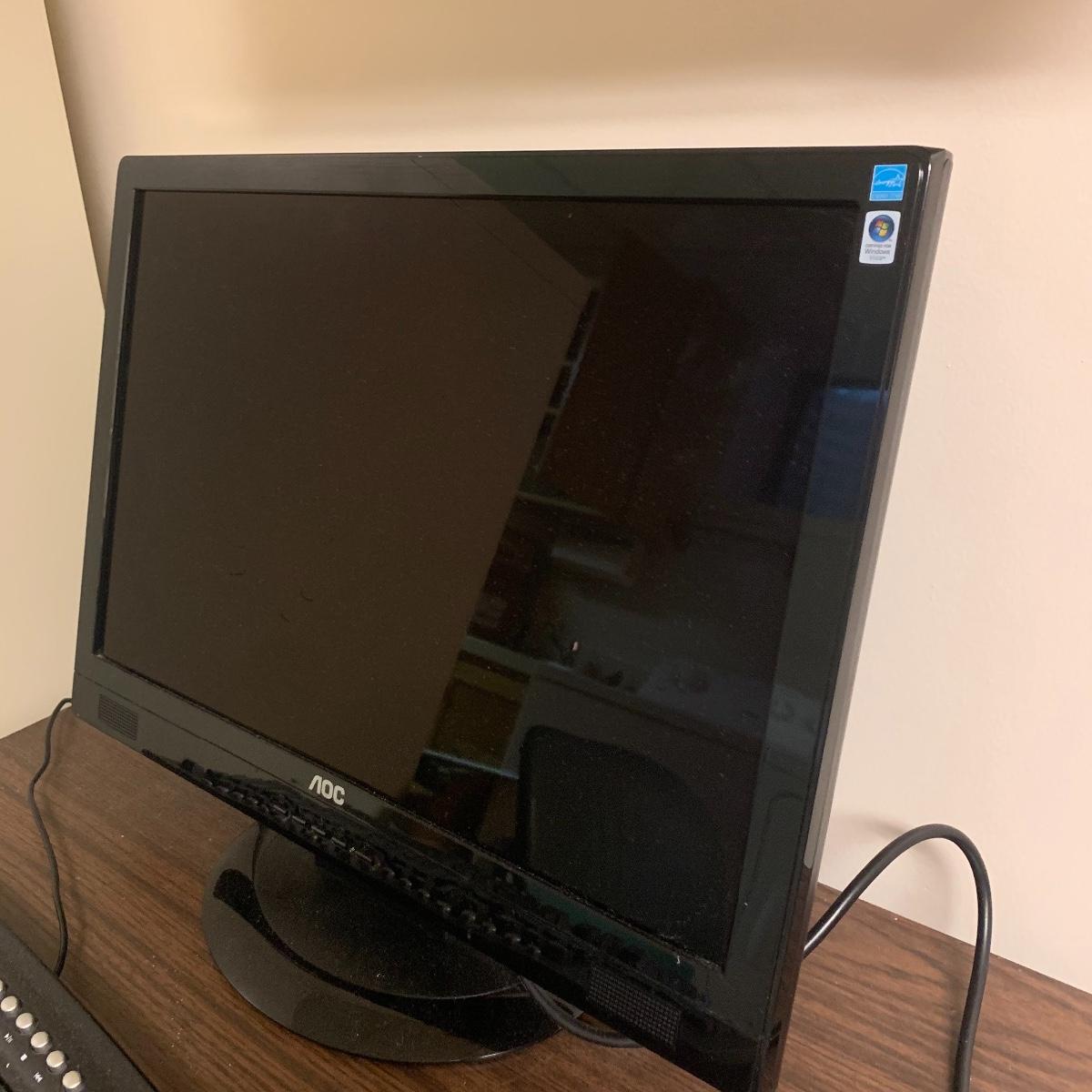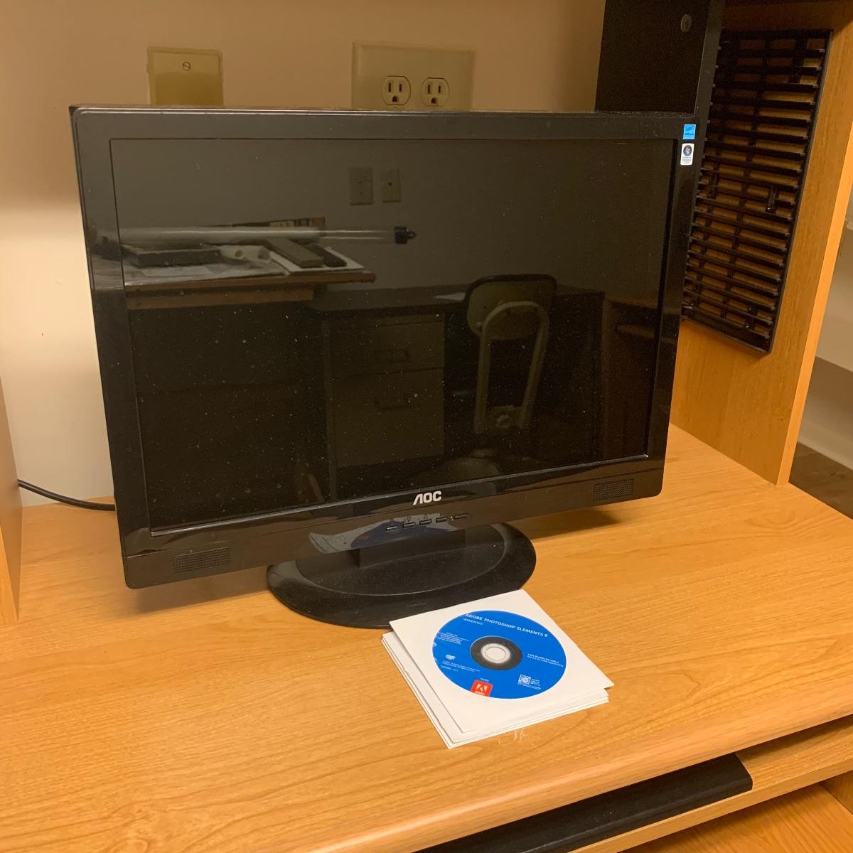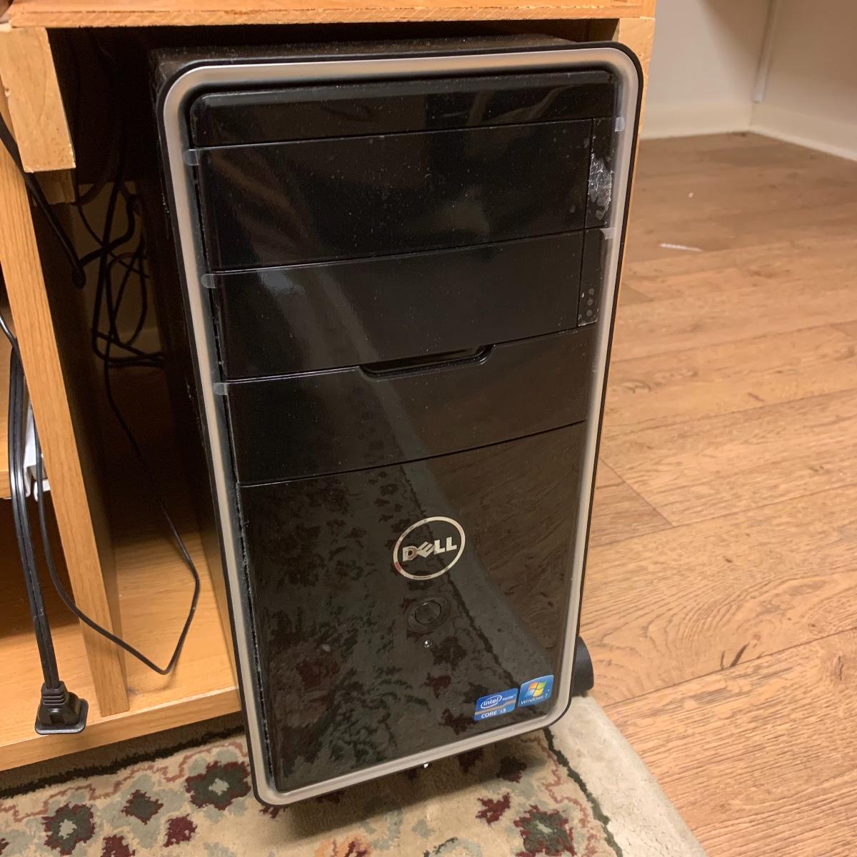 This lot includes two Dell Computers, two keyboards, four computer mouse, four instructional DVDs, and a Dell inspiration Processor. There are three Dell instructional DVDs and one Adobe Photoshop Elements 9 DVD. Three of the computer mice are Dell brand and the other is Kensington brand. One of the keyboards is Dell brand and the other keyboard is from the brand Dynex. The Dell computers are both AOC Dell Computers. They appear to come with cables necessary for use. One of the computers has some scratching at the top (see photos). The computer screens can adjust straight or leaned back. Cannot confirm either computer works. The computers both measure about 19in x 13in x 4in. The Dell Inspiration Processor Tower is a Windows 7 Home Premium Intel Core 13. Can confirm it turns on. It measures about 17.5in x 7in x 15in. Local pick up only.