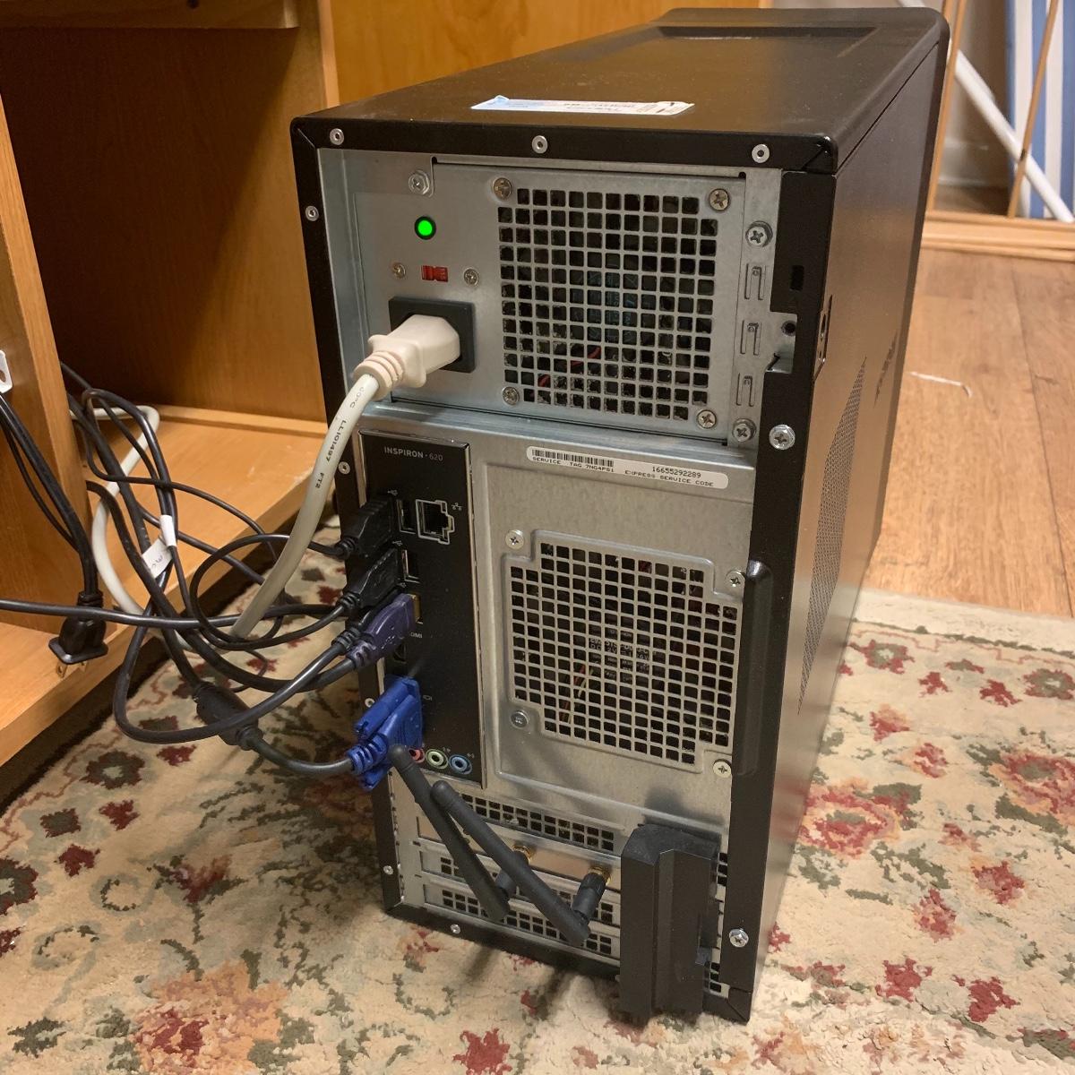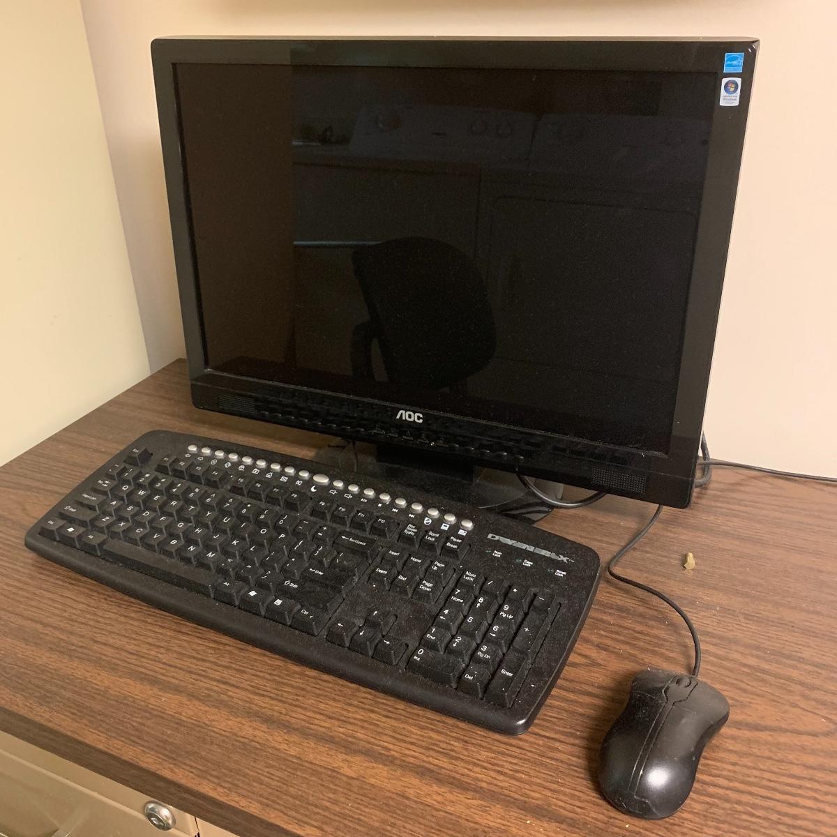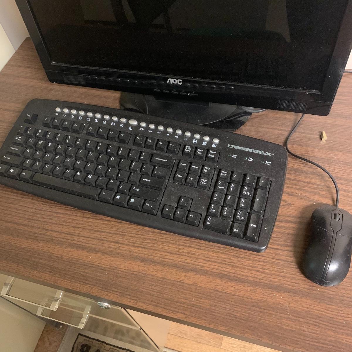 This lot includes two Dell Computers, two keyboards, four computer mouse, four instructional DVDs, and a Dell inspiration Processor. There are three Dell instructional DVDs and one Adobe Photoshop Elements 9 DVD. Three of the computer mice are Dell brand and the other is Kensington brand. One of the keyboards is Dell brand and the other keyboard is from the brand Dynex. The Dell computers are both AOC Dell Computers. They appear to come with cables necessary for use. One of the computers has some scratching at the top (see photos). The computer screens can adjust straight or leaned back. Cannot confirm either computer works. The computers both measure about 19in x 13in x 4in. The Dell Inspiration Processor Tower is a Windows 7 Home Premium Intel Core 13. Can confirm it turns on. It measures about 17.5in x 7in x 15in. Local pick up only.