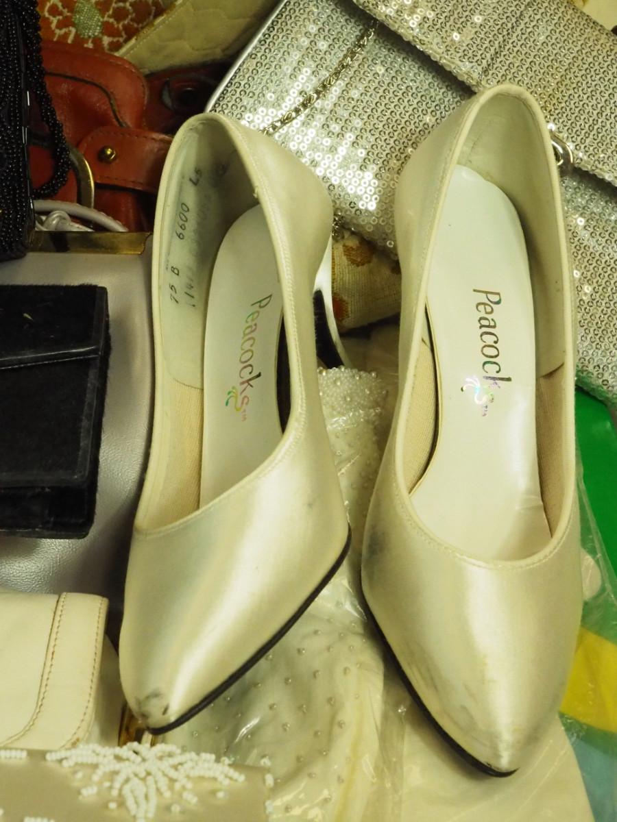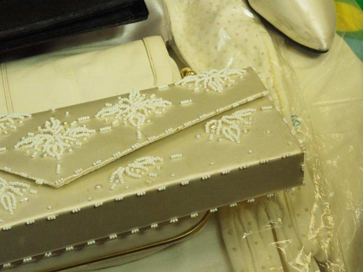 Lot 216- Purses and bags long fancy gloves and Princess shoes