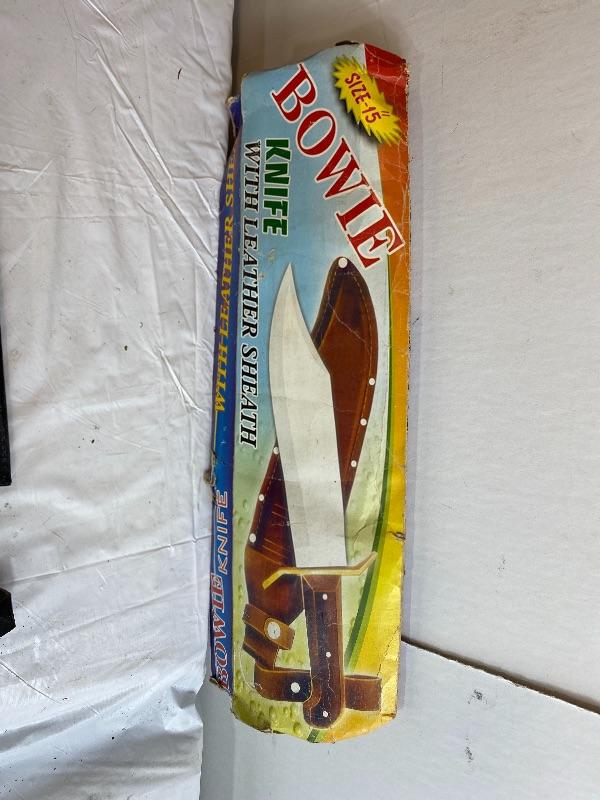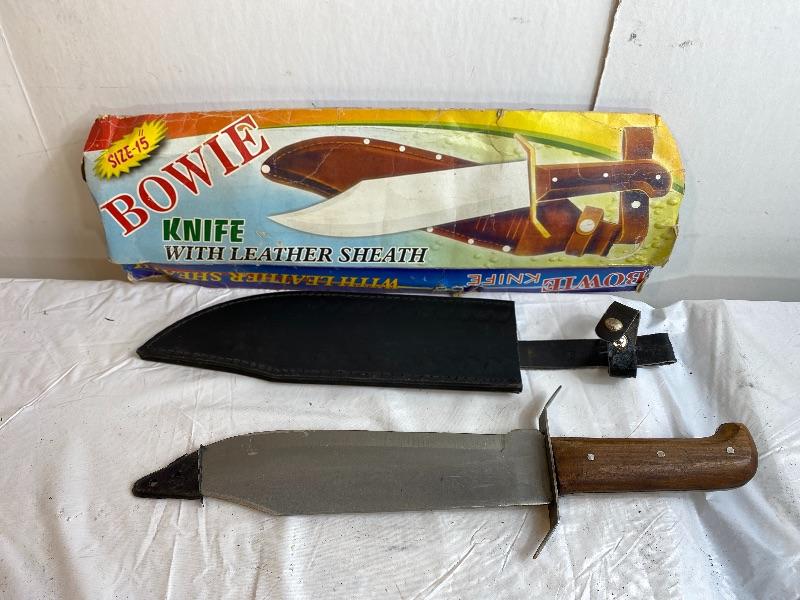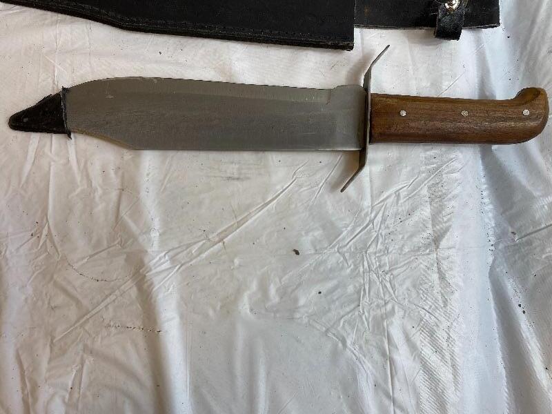 Lot 216 S Vintage 15” BOWIE KNIFE Leather Sheath