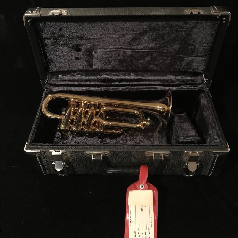 Awesome and unique find! Selmer Piccolo Trumpet marked with “80501”. The instrument looks shiny and new! Three of the four valves do not move with moderate pressure applied. The valve that moves appears to move properly. Bach mouthpiece is included. Case appears in nice shape with some pieces that aren’t in the right place. It also doesn’t have the correct padding to keep the piccolo trumpet from moving inside. See photos. Case measures approximately 15.25” x 7” x 5.5”. Shipping available.