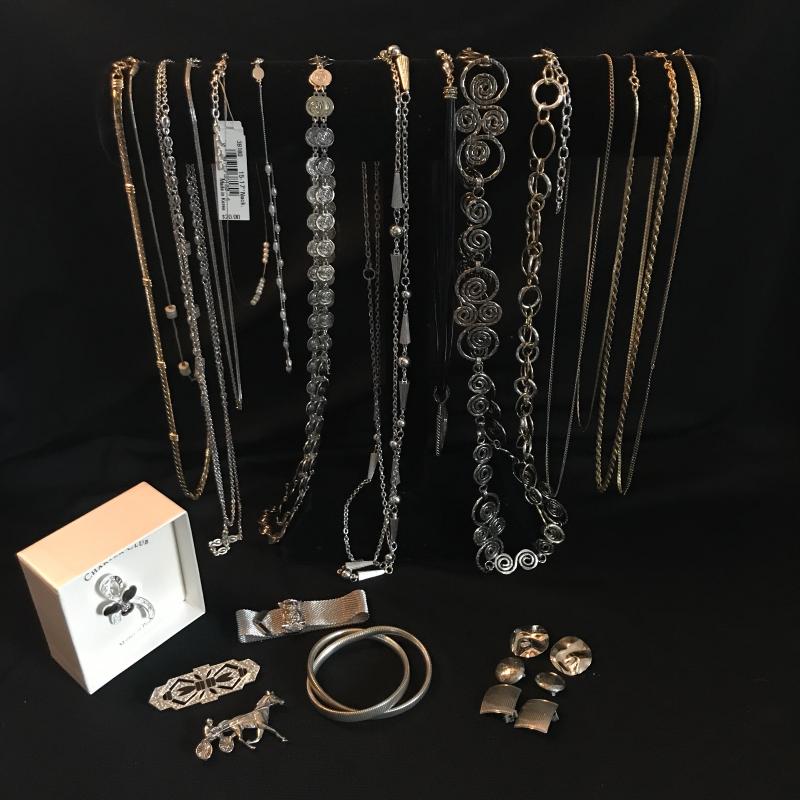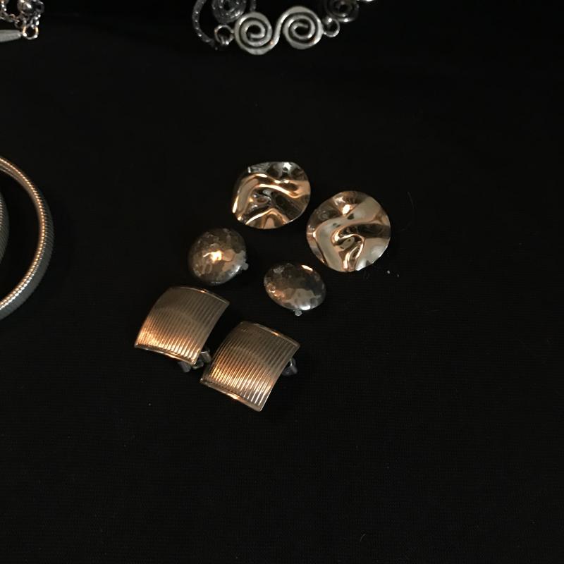 Large lot of silver and gold. None of these items have markings of sterling, 925 or gold. Some are not marked and some are brands that include Trifari, Monet, Sarah Cov. Come to preview to inspect! Shipping or local pick up.