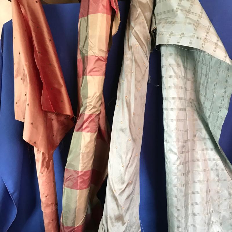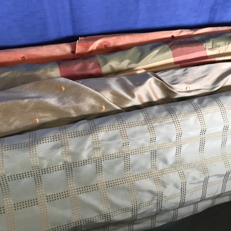 Lot includes four large bolts of upholstery fabric. Each has a sheen to it and is fairly lightweight. Cannot verify yardage but it’s a substantial amount. Colors go well together. No shipping available. Local pickup only in Maggie Valley, NC.