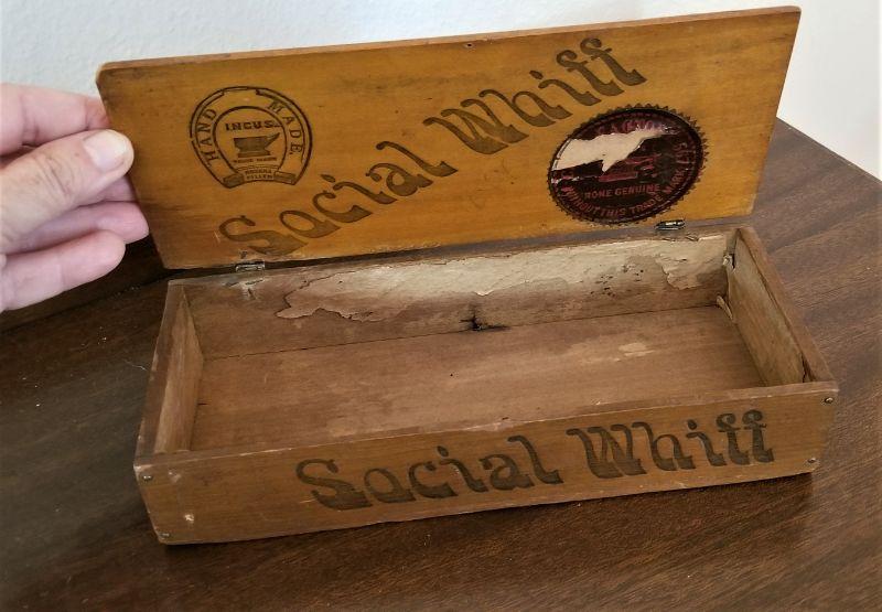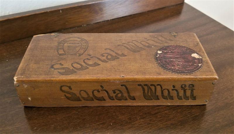 Neat old "Social Whiff" cigar/cigarette store display box. Antique condition - measures 8.75" x 3.75". 2" tall. Hand made - Havana filled.