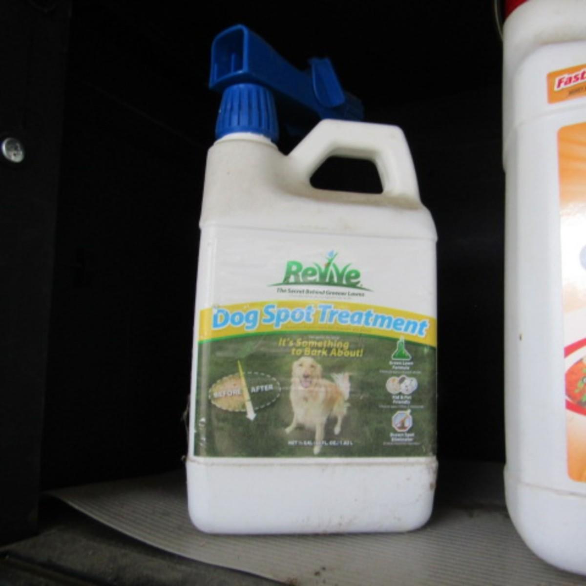 REVIVE DOG SPOT TREATMENT, WEED & GRASS KILLER, MIRACLE-GRO PLANT FOOD AND HOME DEFENSE MAX KILLS BUGS INSIDE AND OUT