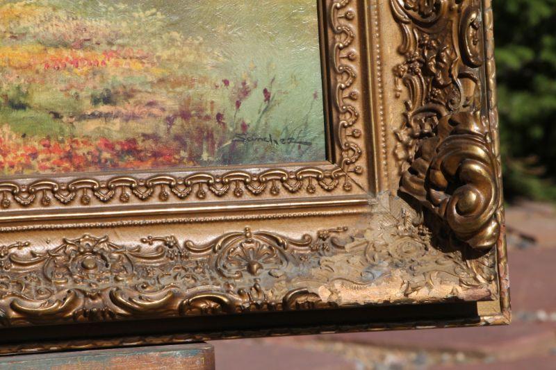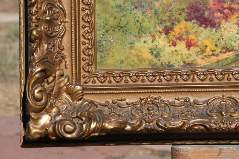 Lot 2-162: Vintage Framed (damage shown) Oil Painting SIGNED {37" x 21"}