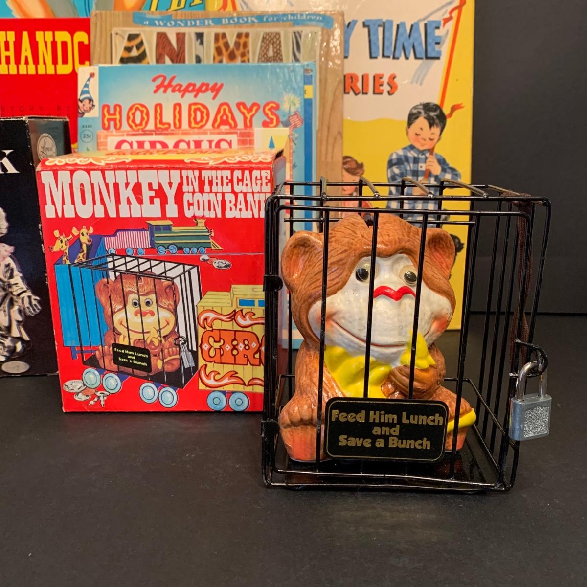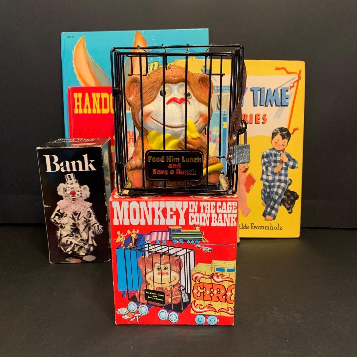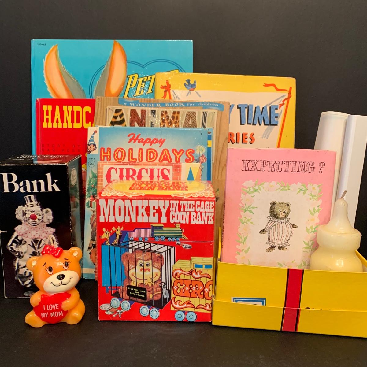 LOT 216R: Vintage Banks, Growth Chart, Candle & Books