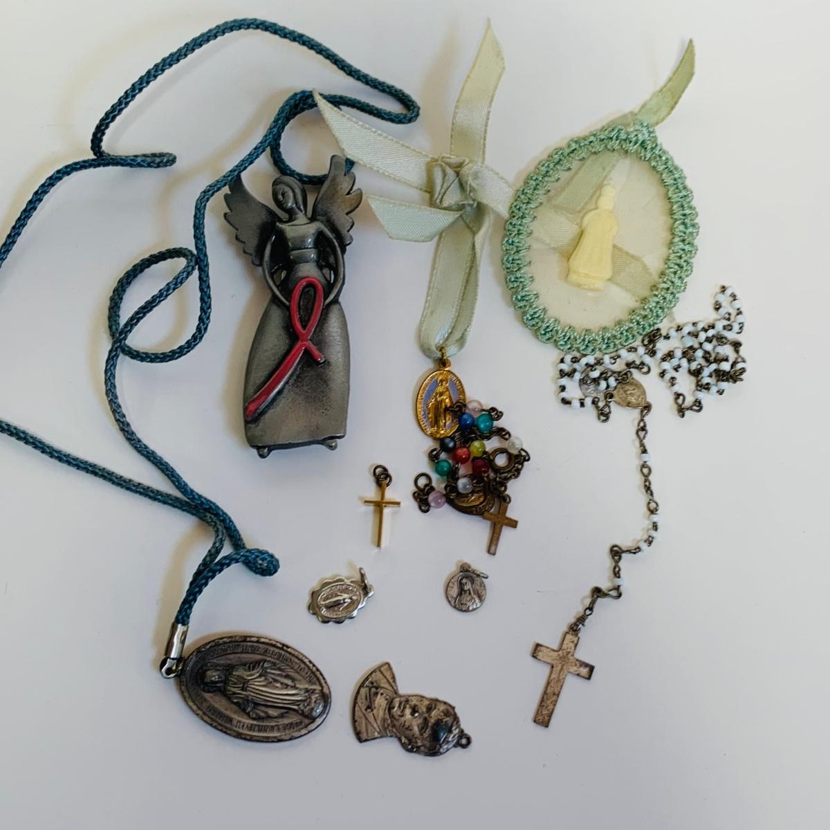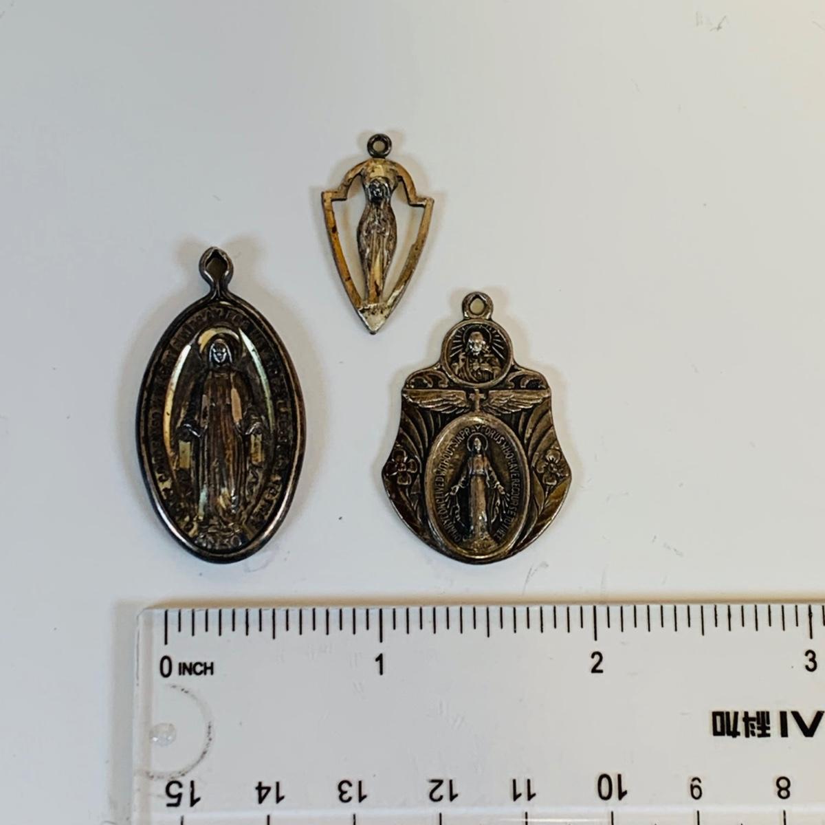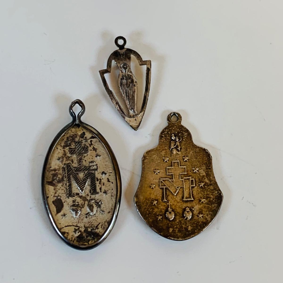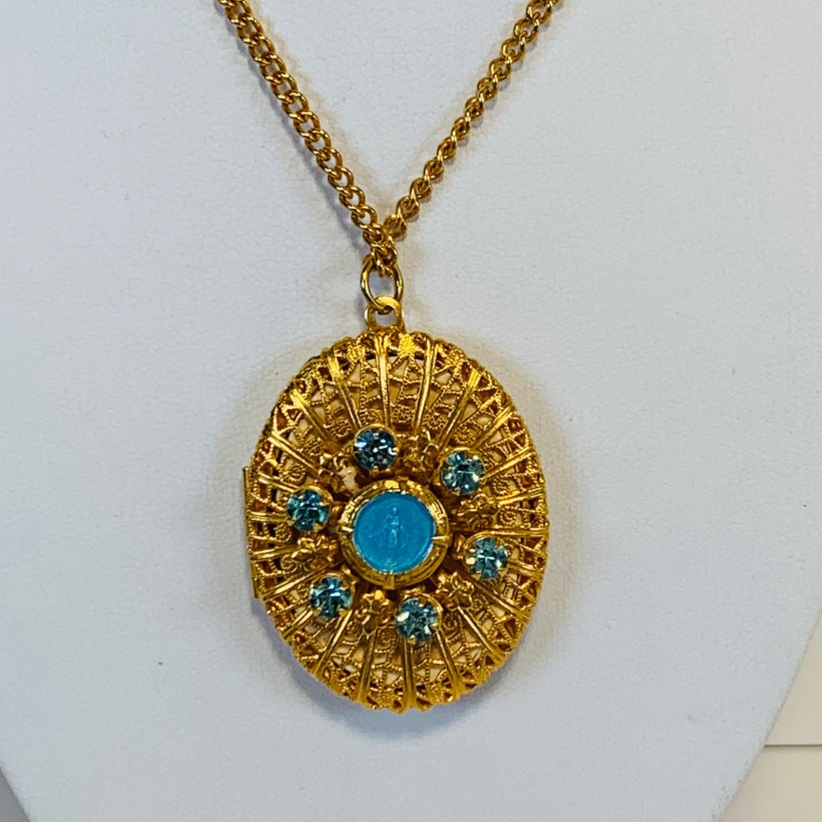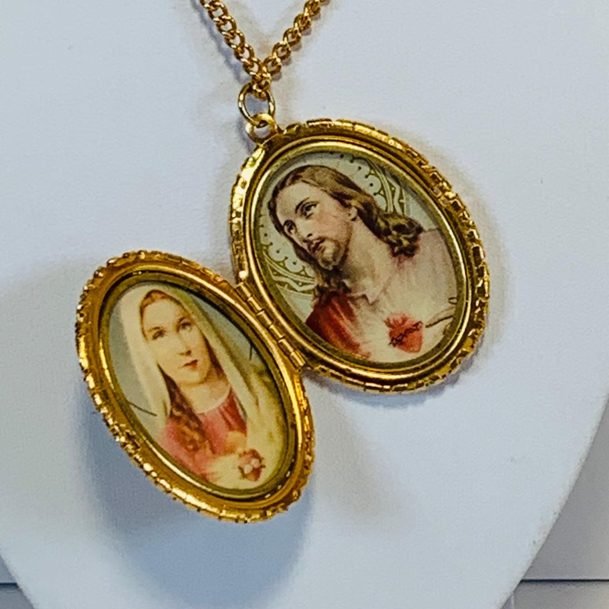 Lot 217: Sterling Silver Pendant w/16" Sterling Silver Chain, 3-Sterling Silver Religious Charms, Gold Tone Religious Locket, Heart Shaped "Splendid" Music Box & More