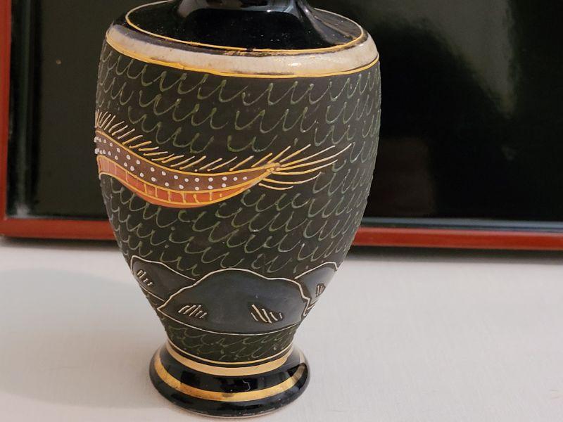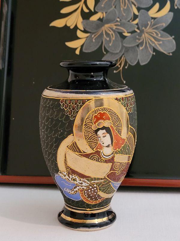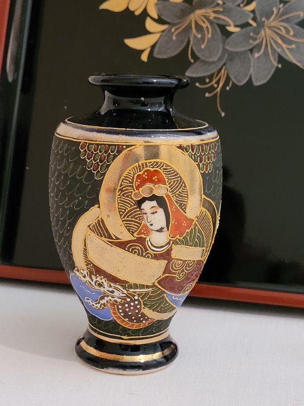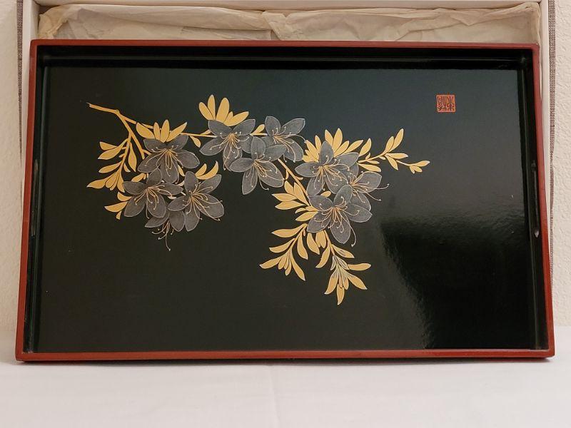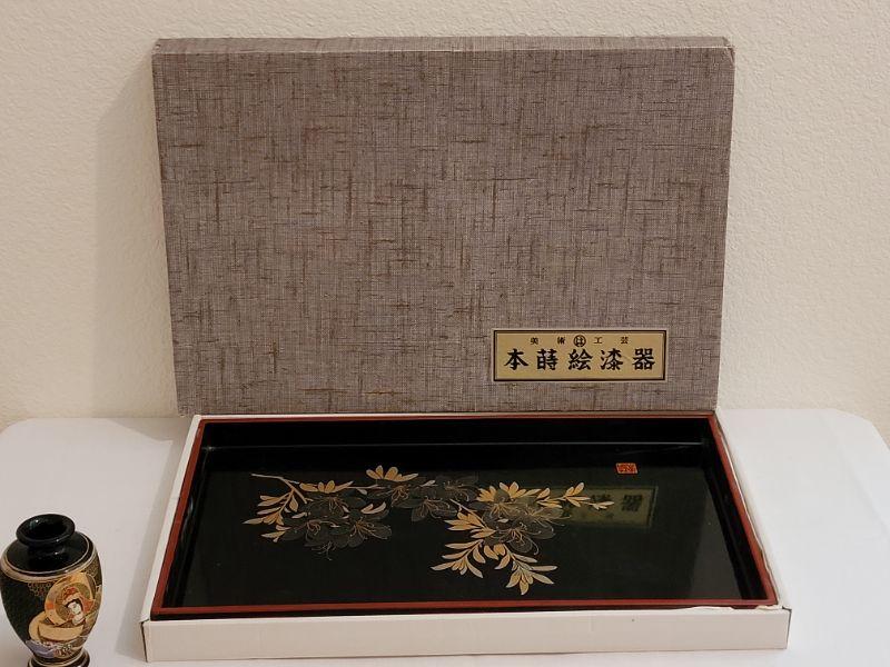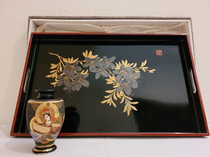 Lot 217: Vintage Asian Lacquered Tray & Handpainted Vase