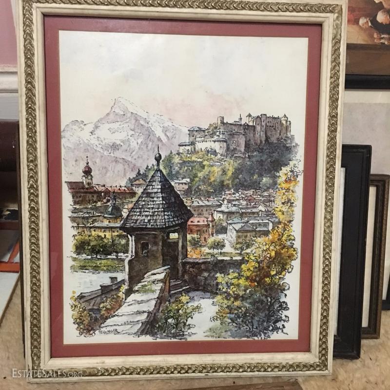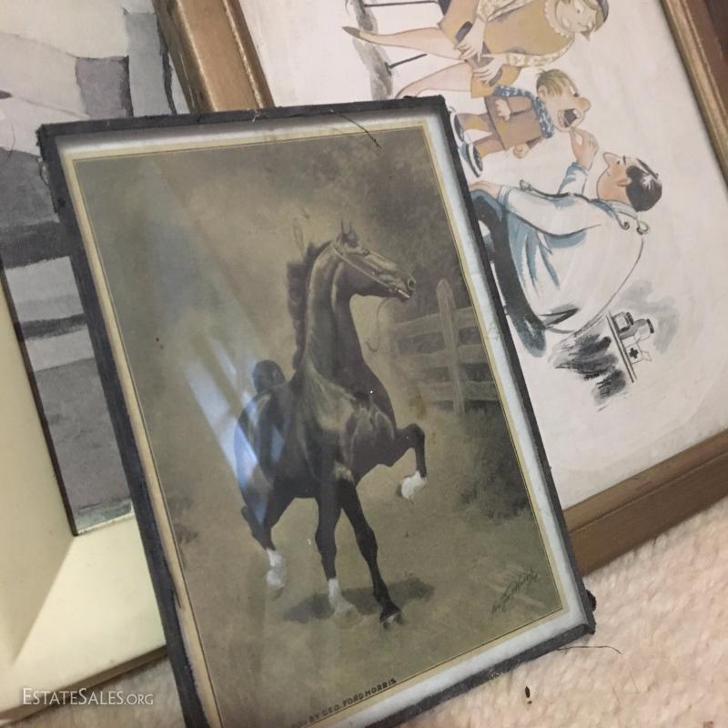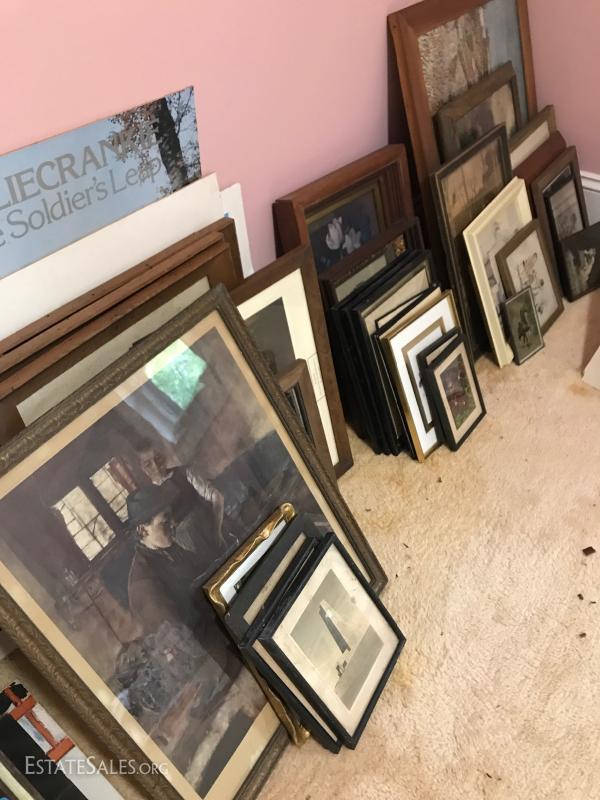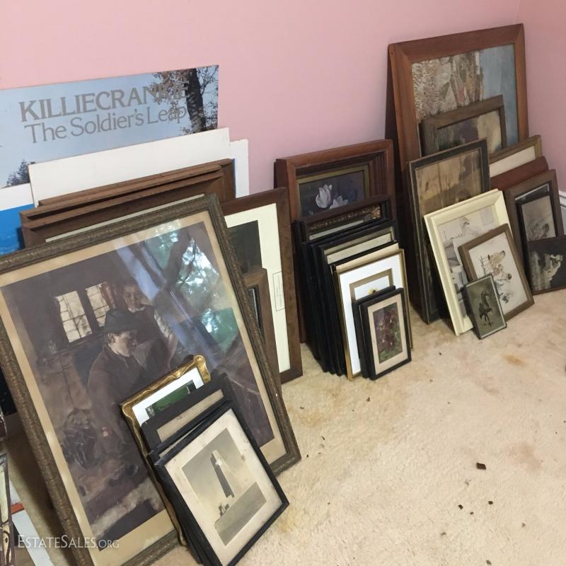 Assorted framed art. Various sizes and artists. Varying conditions. You are not required to take whole Lot. If you win you may pick and chose what you want.