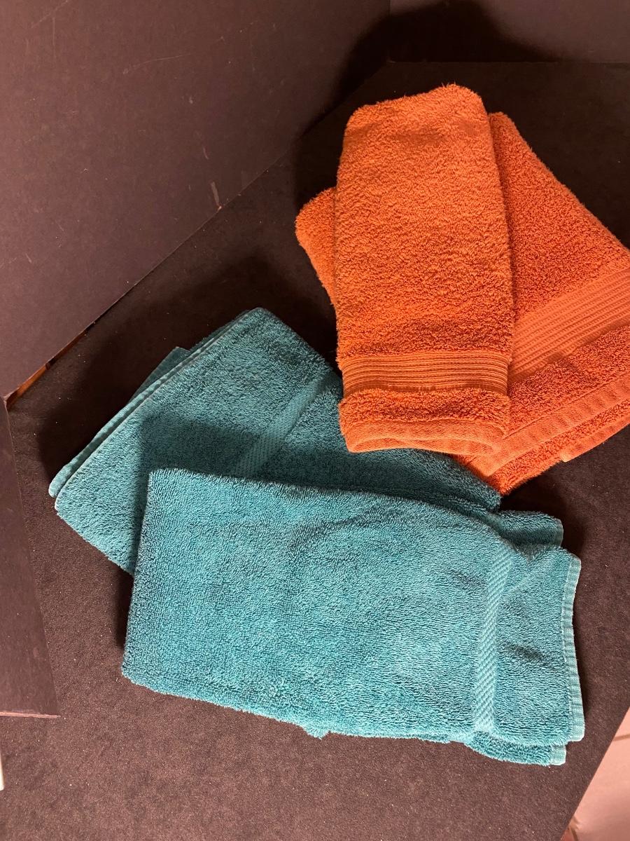 Rust colored: one bath and one hand towels