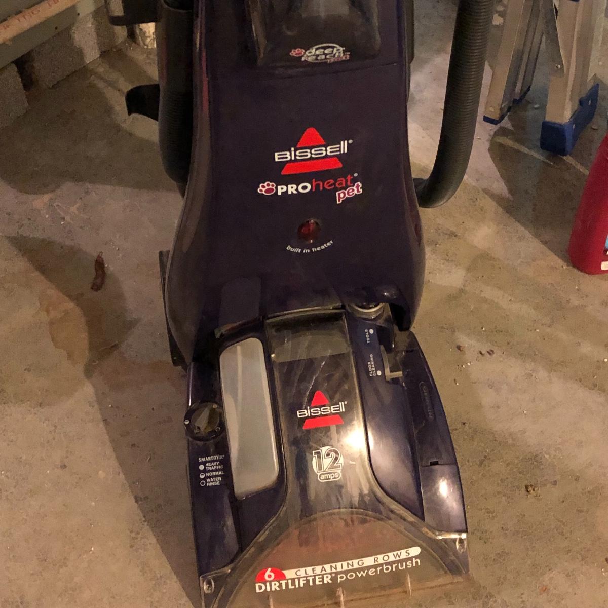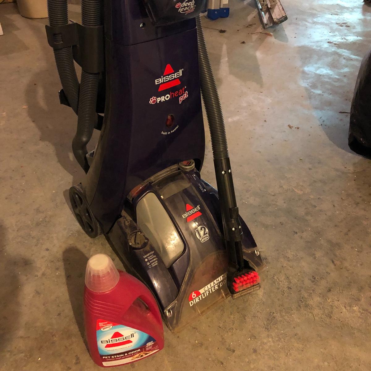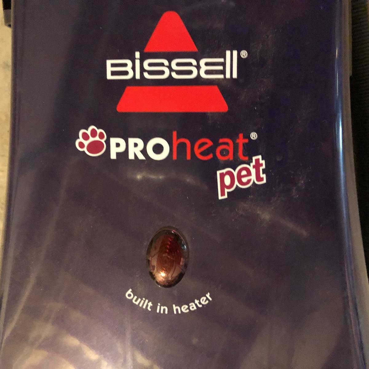 Clean your floors after your pet! This lot includes one Bissell Pro-heat Pet Steam Cleaner and Bissell Pet stain and odor cleaner. The cleaner powered on when plugged in. Local pick up only.