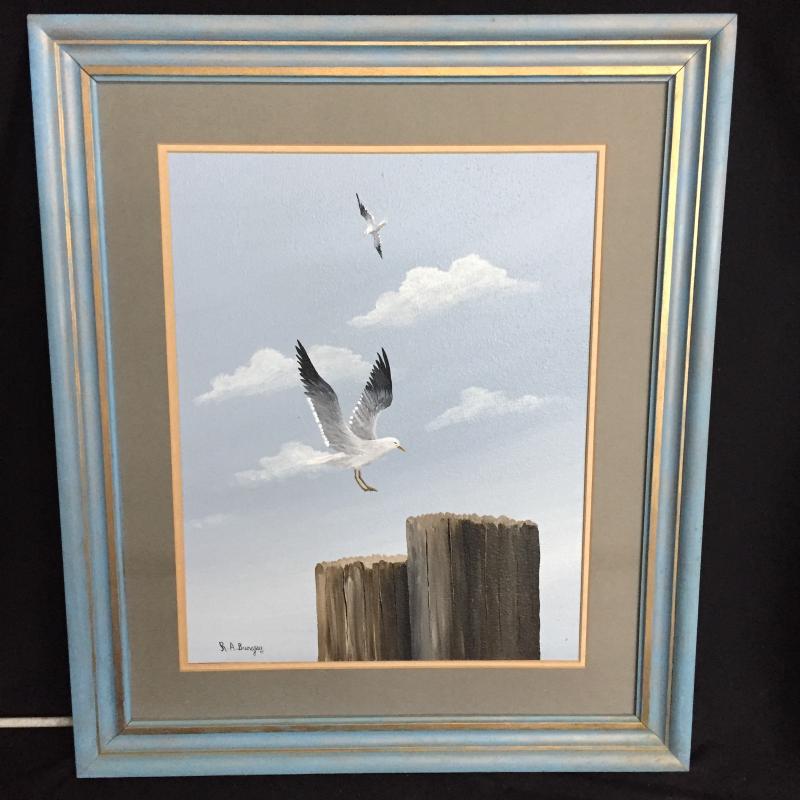 Captivating coastal art. Relax and pretend you are at the beach. Framed painting measures 27.5” x 23.5” and is accompanied by more! See photos. No shipping.