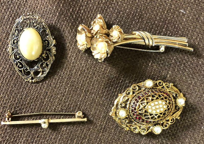 Lot #217 Gold Toned pins, (4), antique and vintage
