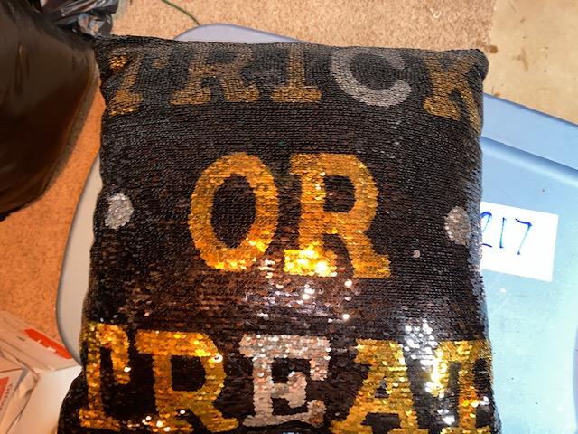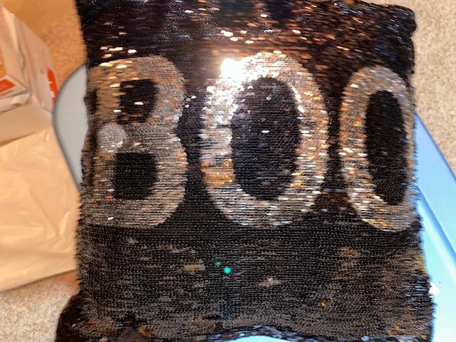 says trick or treat then flip the sequins and it says boo. 14" x 16"